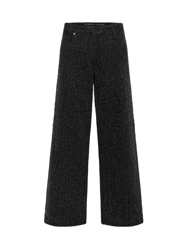 Design: Gevoerde zoom/rand, Ritssluiting, 5-pocket-style; Type sluiting: Ritssluiting; Materiaal: Denim; Motief: Effen; Extra's: Studs, Met textuur, Riemlussen; Lengte: Lang/maxi; Pasvorm: Wide leg; Taillehoogte: Mid waist