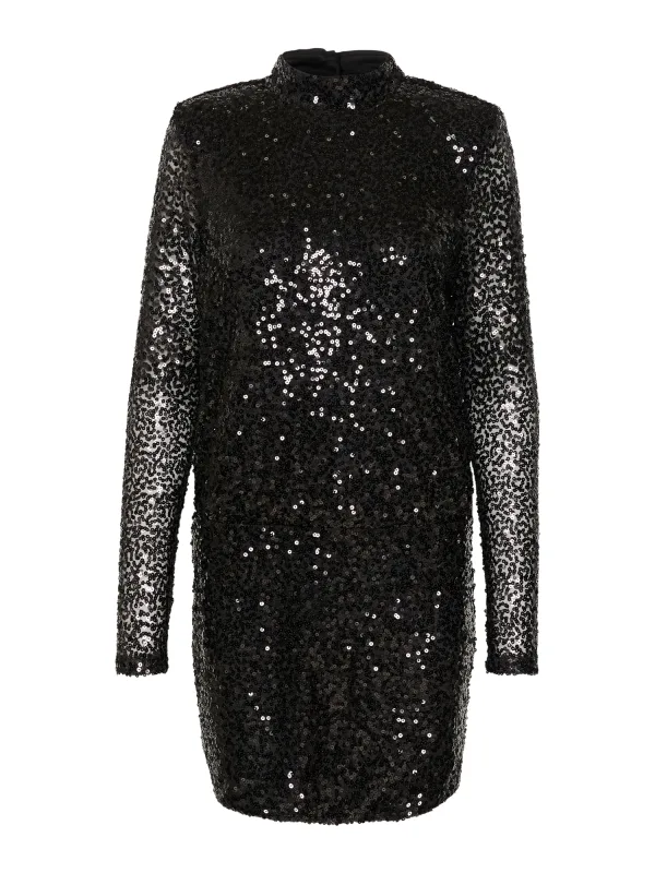 Design: Gevoerde zoom/rand, Rechte zoom, Uitgesneden rug; Type sluiting: Knoopsluiting; Halstype: Ronde hals; Motief: Effen; Details: Cut-outs, Pailletten; Extra's: Glitterend, Op staal naden; Lengte: Kort/mini; Snit: Figuur omarmend; Pasvorm: Normale pasvorm; Armlengte: Lange mouw