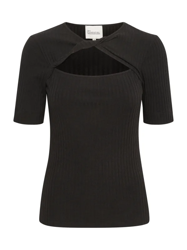 Design: Gevoerde zoom/rand, Geribbeld gebreid; Materiaal: Jersey; Motief: Effen; Details: Cut-outs; Extra's: Op staal naden, Met textuur; Pasvorm: Slanke pasvorm; Armlengte: Halve mouw; Lengte: Normale lengte