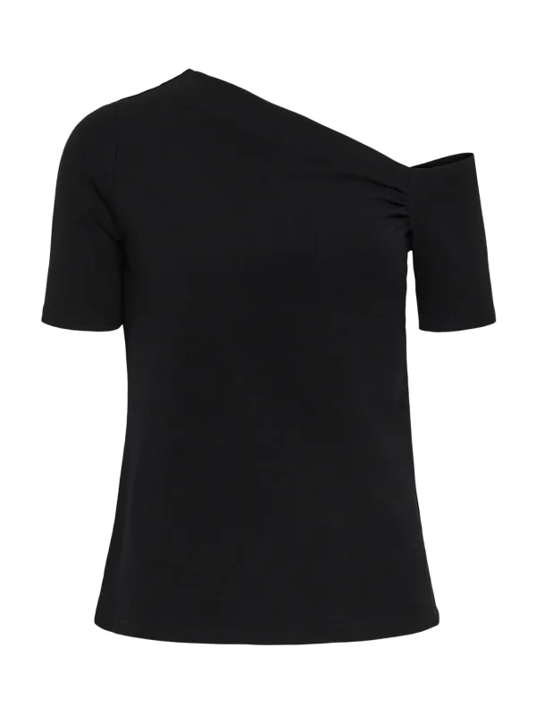 Design: Gevoerde zoom/rand, Recht model; Materiaal: Jersey; Motief: Effen; Details: Gedrapeerd; Extra's: Op staal naden, Voelt zacht aan; Pasvorm: Slanke pasvorm; Armlengte: Halve mouw; Lengte: Normale lengte