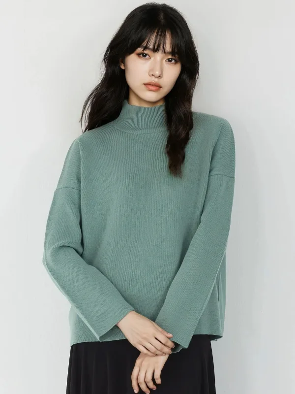 Design: Overcut schouder; Materiaal: Knitwear; Halstype: Opstaande kraag; Motief: Effen; Extra's: Op staal naden; Pasvorm: Losse pasvorm; Armlengte: Lange mouw; Lengte: Normale lengte