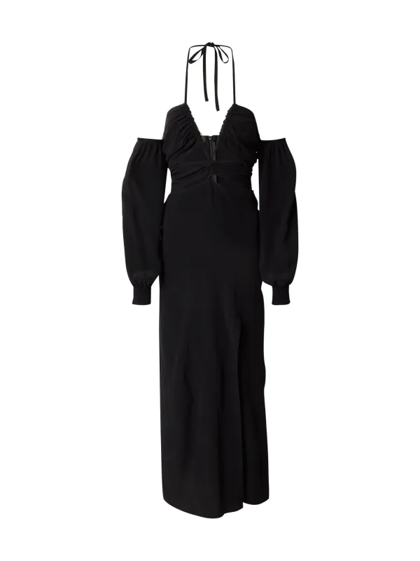 Design: Gevoerde zoom/rand, Beenopening, Rug rits, Strapless/off-shoulder, Diepe snit/decolleté; Type sluiting: Ritssluiting; Materiaal: Viscose; Motief: Effen; Soort bandjes: Haltermodel; Details: Cut-outs, Gedrapeerd; Extra's: Biezen, Op staal naden; Lengte: 7/8 lengte; Pasvorm: Normale pasvorm; Armlengte: Lange mouw