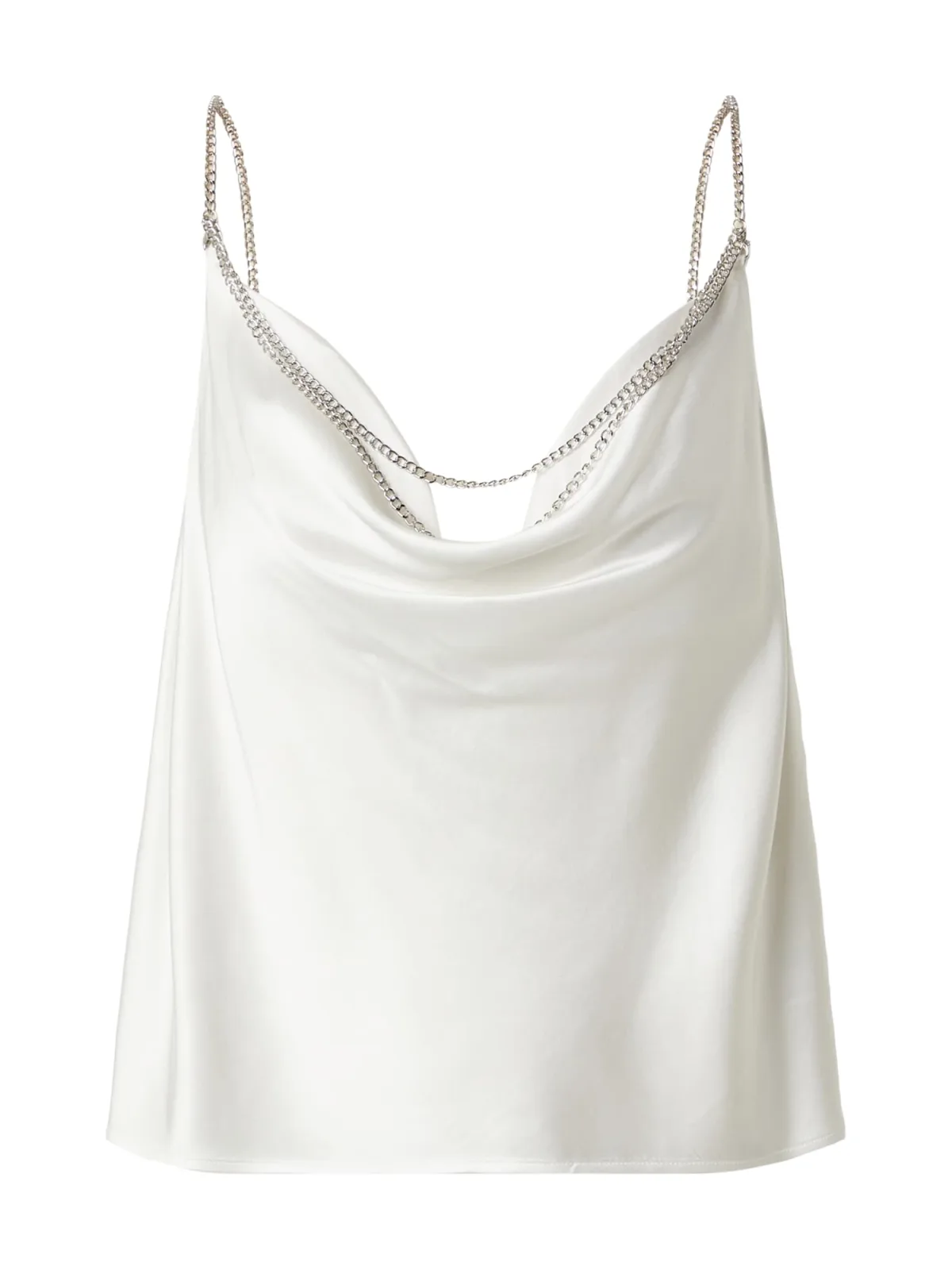 Design: Rechte zoom; Materiaal: Satijn; Halstype: Watervalhals; Motief: Effen; Soort bandjes: Spaghettibandjes; Extra's: Op staal naden; Pasvorm: Normale pasvorm; Armlengte: Mouwloos; Lengte: Normale lengte