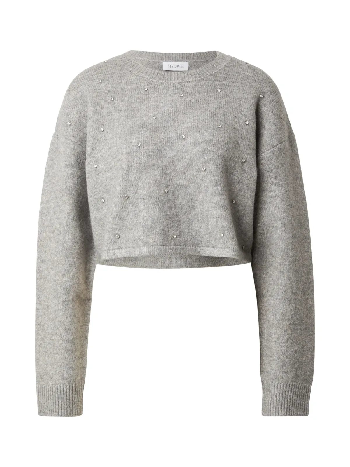 Design: Geribbelde kraag; Materiaal: Knitwear; Halstype: Ronde hals; Motief: Mélange; Details: Sierstenen; Extra's: Met textuur; Pasvorm: Normale pasvorm; Armlengte: Lange mouw; Lengte: Korte pasvorm