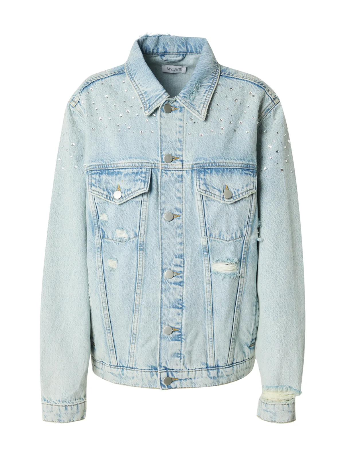 Design: 1-knoops manchetten, Overcut schouder, Turn-down kraag, Borstzak; Type sluiting: Knoopsluiting; Voering: Niet gevoerd; Materiaal: Denim; Motief: Effen; Extra's: Met halfedelstenen, Contrasterende naden, Used-look, Milieuvriendelijk geproduceerd; Pasvorm: Losse pasvorm