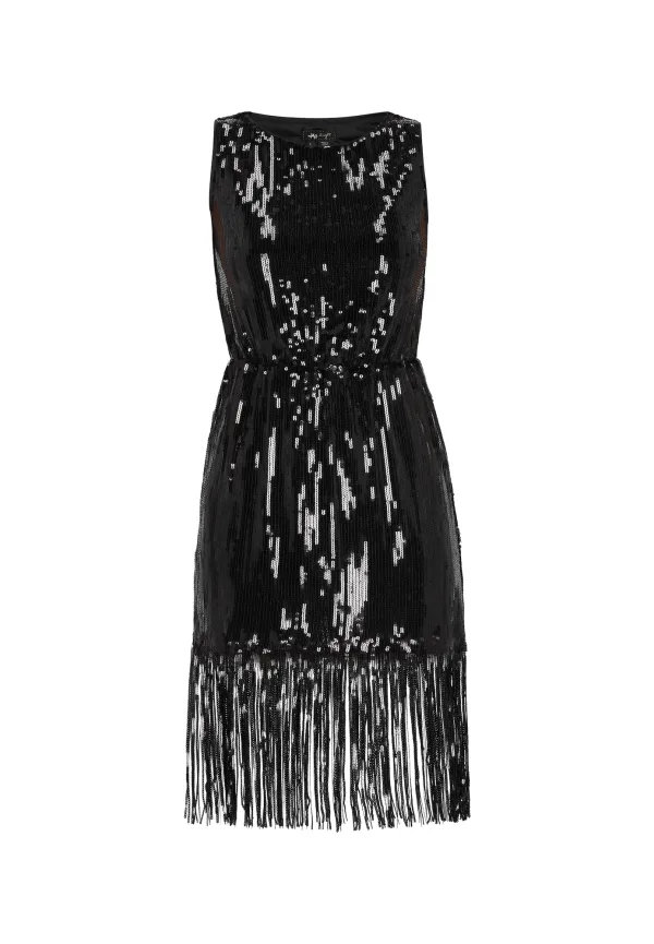 Design: Gefranjerde zoom; Halstype: Ronde hals; Motief: Effen; Soort bandjes: Brede bandjes; Details: Franjes, Pailletten; Extra's: Glinsterend, Gestructureerd oppervlak; Lengte: Kort/mini; Snit: Getailleerd; Pasvorm: Slanke pasvorm; Armlengte: Mouwloos