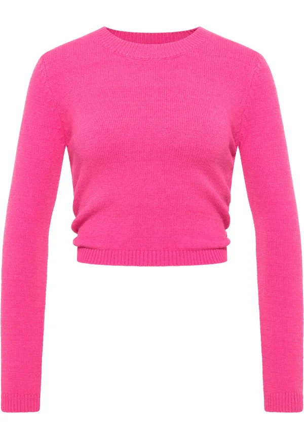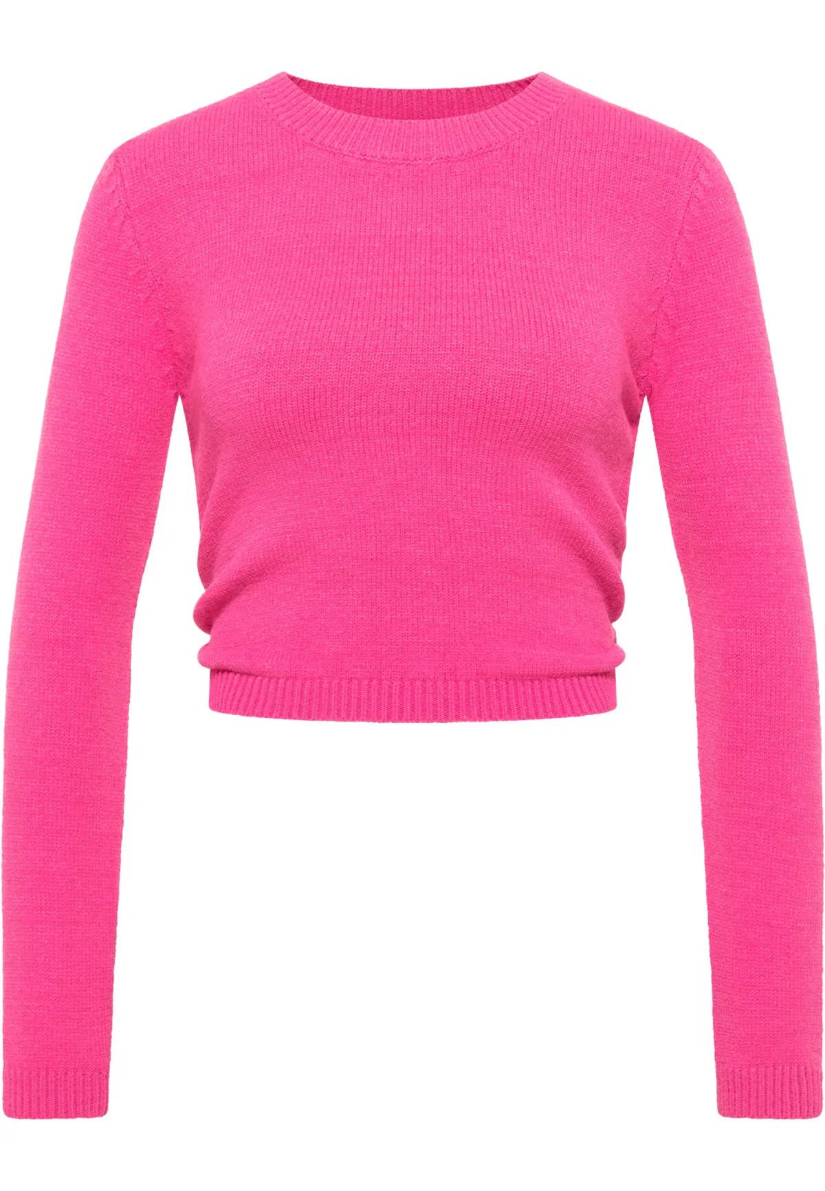 Jij brengt sexy terug! Van voren ziet dit truitje eruit als een basic met lange mouwen en een ronde hals - maar de achterkant is absoluut party-ready. De hoge rughals en de wikkelbandjes, die je taille nog eens in de kijker zetten, brengen je gegarandeerd in de feeststemming. Deze trui maakt uw outfit gewoonweg perfect, vooral met uw broek met hoge taille.