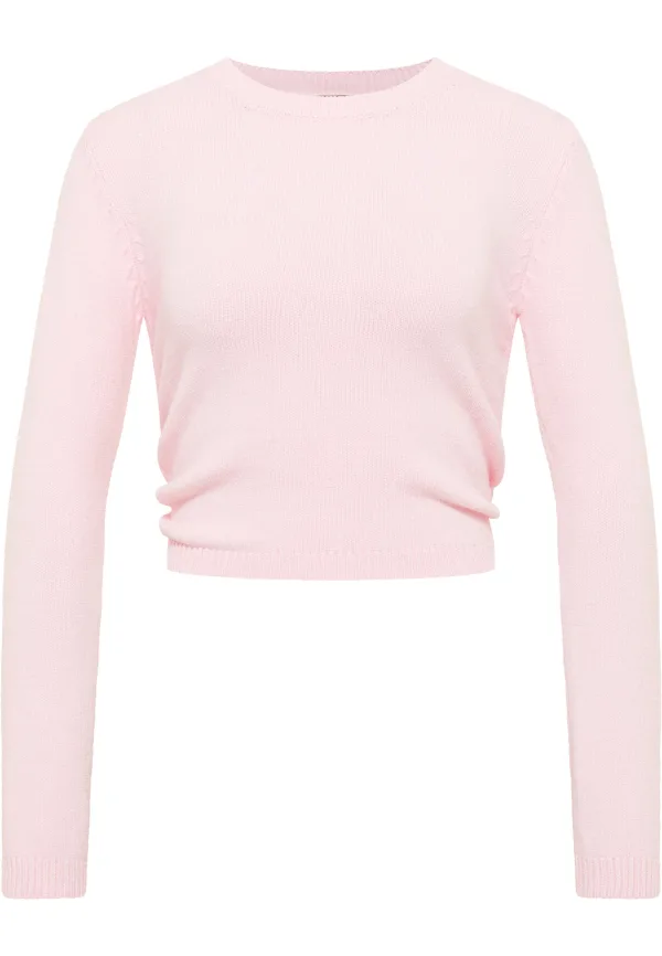 Jij brengt sexy terug! Van voren ziet dit truitje eruit als een basic met lange mouwen en een ronde hals - maar de achterkant is absoluut party-ready. De hoge rughals en de wikkelbandjes, die je taille nog eens in de kijker zetten, brengen je gegarandeerd in de feeststemming. Deze trui maakt uw outfit gewoonweg perfect, vooral met uw broek met hoge taille.