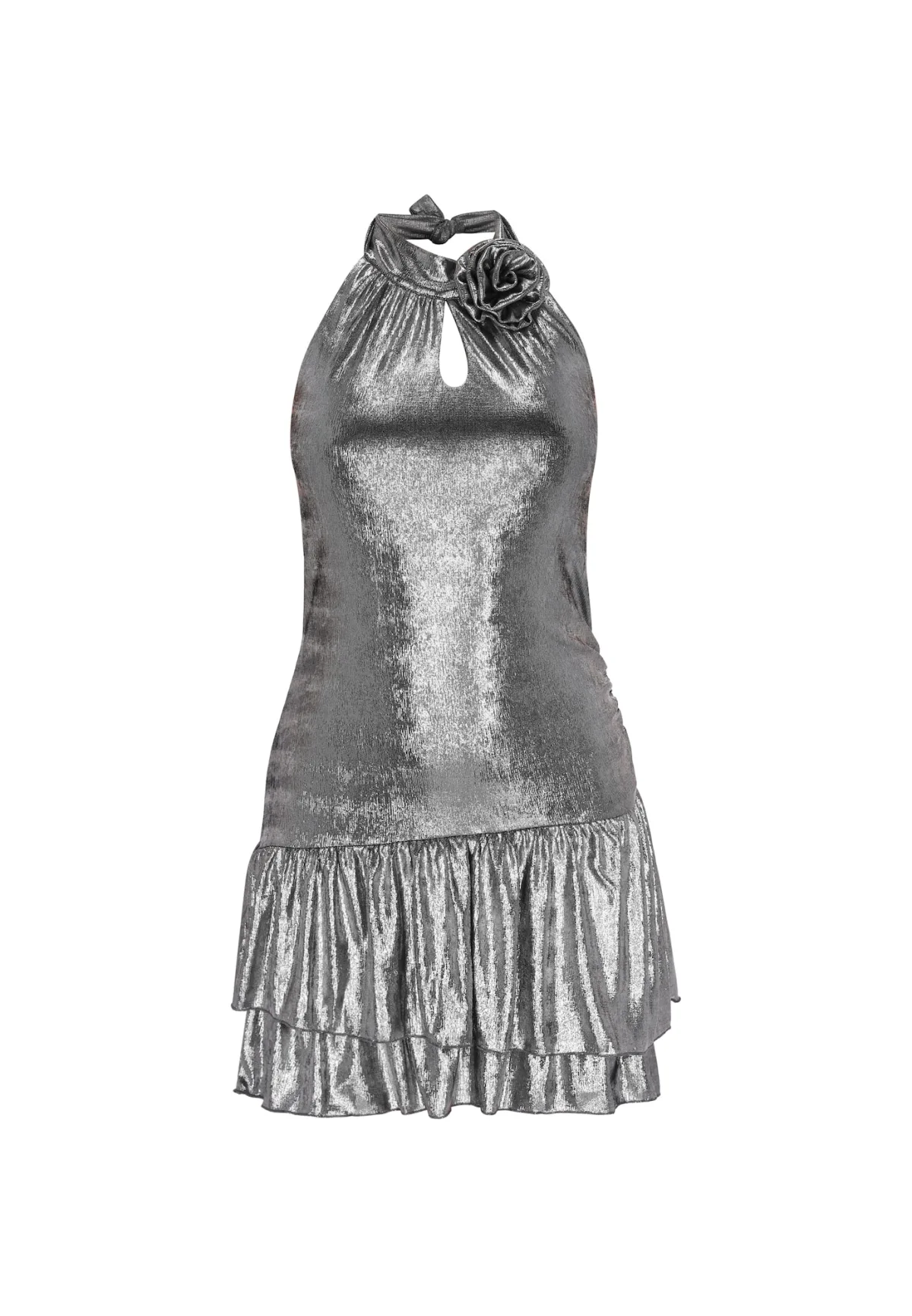 Design: Gevoerde zoom/rand, Om te knopen/binden; Type sluiting: Slip; Motief: Effen; Soort bandjes: Haltermodel; Details: Ruches; Extra's: Applicaties; Lengte: Kort/mini; Snit: Getailleerd; Pasvorm: Slanke pasvorm; Armlengte: Mouwloos