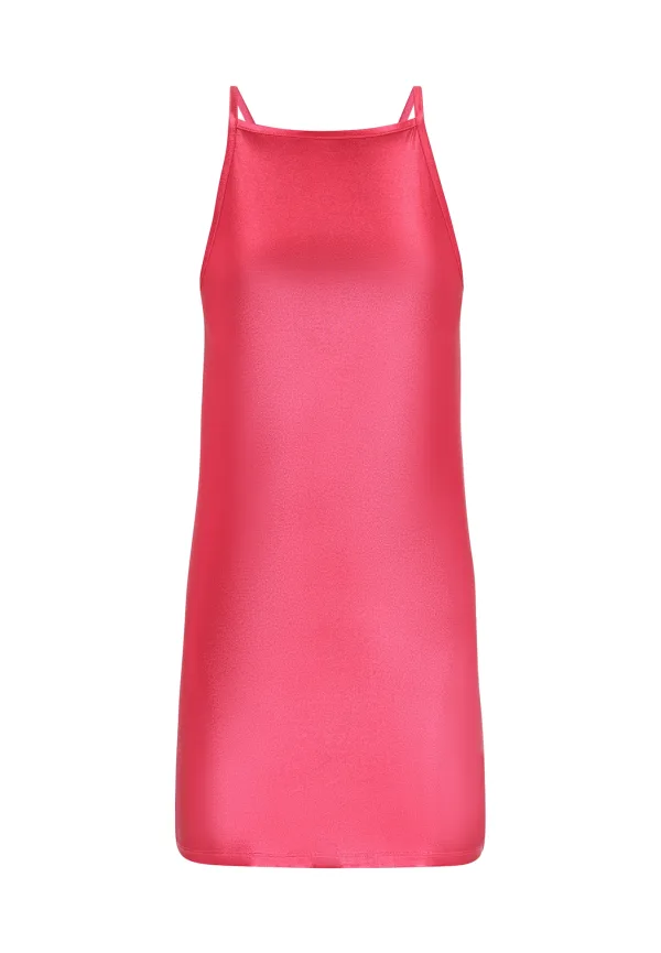 Design: Gevoerde zoom/rand, Rechte zoom; Halstype: Carréhals; Motief: Effen; Soort bandjes: Spaghettibandjes; Extra's: Glanzend, Metallic look; Lengte: Kort/mini; Pasvorm: Aansluitende pasvorm; Armlengte: Mouwloos
