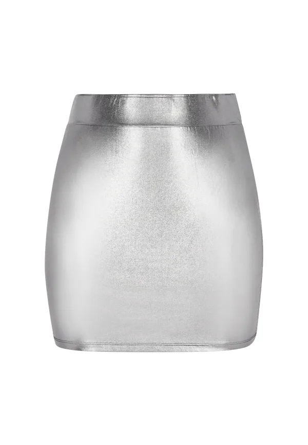 Design: Gevoerde zoom/rand, Rechte zoom; Type sluiting: Slip; Motief: Effen; Rokvorm: Minirok; Extra's: Glanzend, Metallic look; Lengte: Kort/mini; Pasvorm: Aansluitende pasvorm