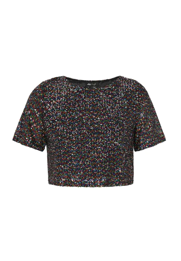 Design: Rechte zoom; Materiaal: Jersey; Halstype: Ronde hals; Details: Pailletten; Extra's: Glitterend; Pasvorm: Normale pasvorm; Armlengte: Kwartmouw; Lengte: Korte pasvorm