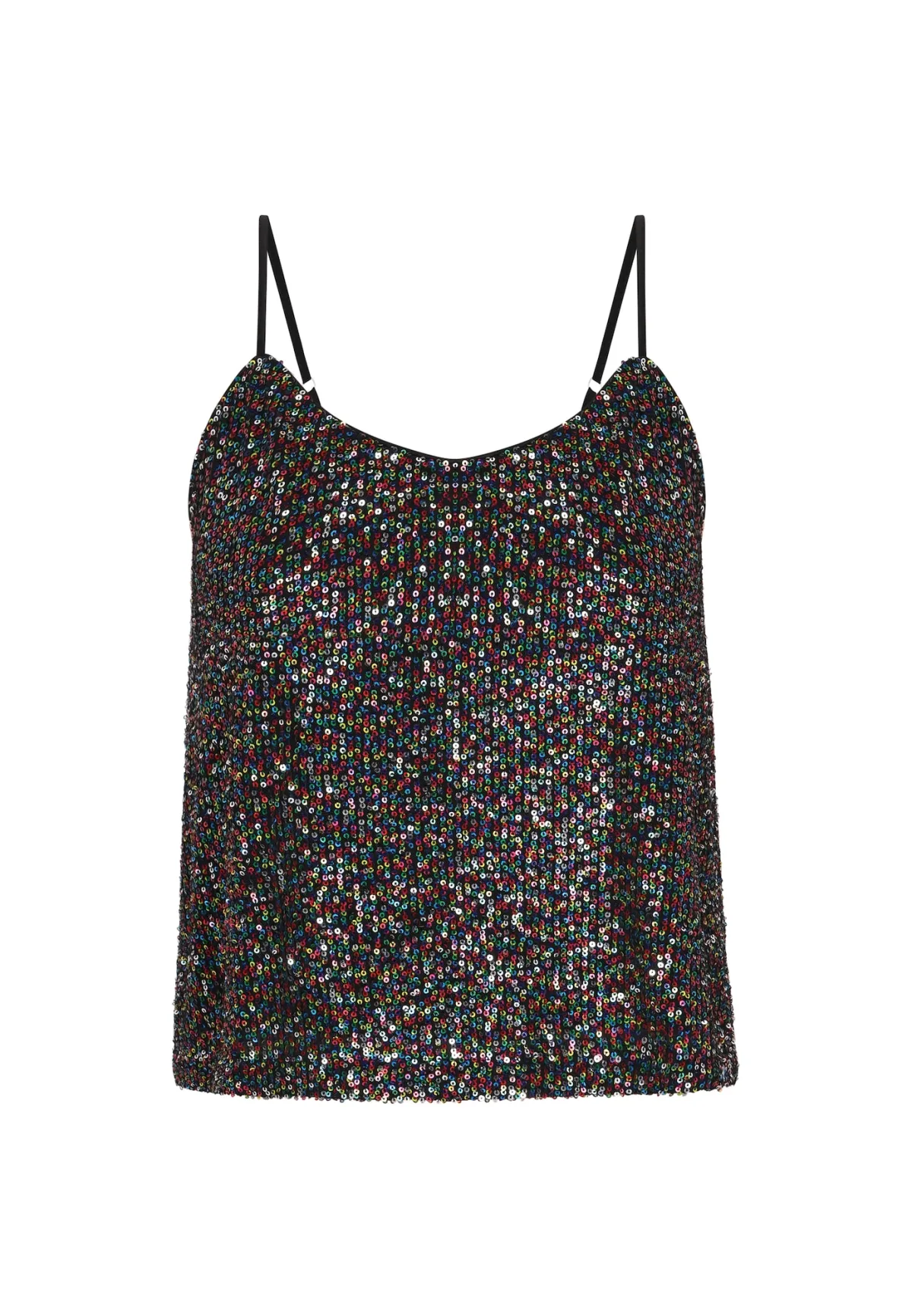 Design: Rechte zoom, Uitgesneden rug; Halstype: V-hals; Soort bandjes: Spaghettibandjes; Details: Pailletten; Extra's: Glitterend, Verstelbare bandjes; Pasvorm: Normale pasvorm; Armlengte: Mouwloos; Lengte: Normale lengte