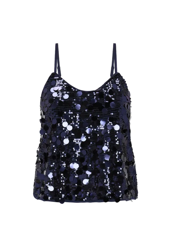 Design: Gevoerde zoom/rand; Halstype: V-hals; Motief: Effen; Soort bandjes: Spaghettibandjes; Details: Pailletten; Extra's: Glinsterend, Verstelbare bandjes; Pasvorm: Normale pasvorm; Armlengte: Mouwloos; Lengte: Normale lengte