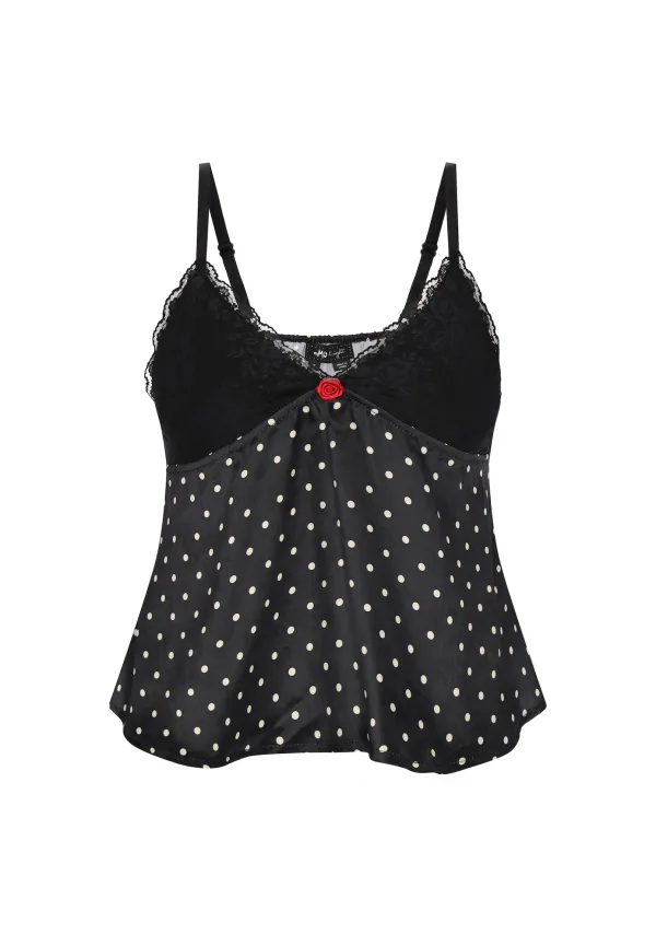 Design: Gevoerde zoom/rand, Diepe snit/decolleté; Halstype: V-hals; Motief: Gestippeld; Soort bandjes: Spaghettibandjes; Details: Kant; Extra's: Verstelbare bandjes, All-over patroon; Pasvorm: Normale pasvorm; Armlengte: Mouwloos; Lengte: Normale lengte