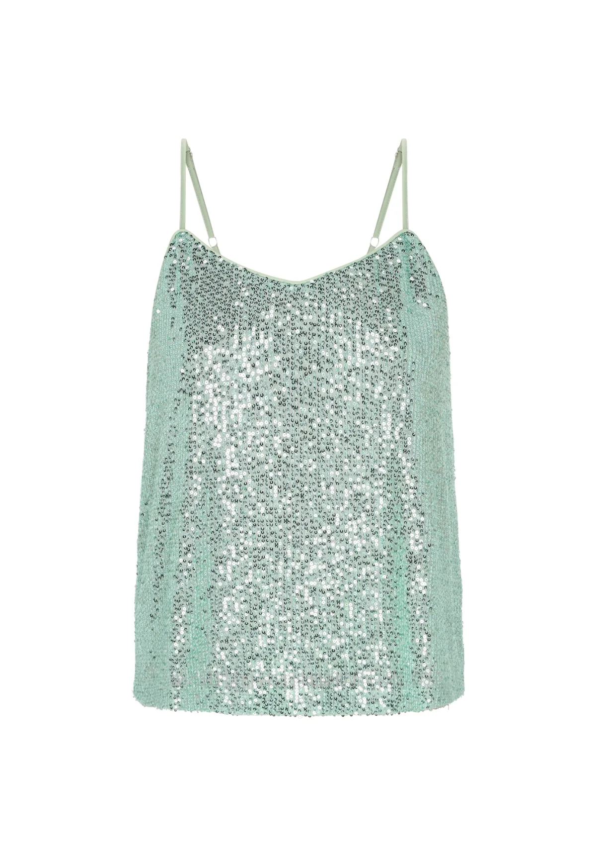 Design: Rechte zoom; Halstype: V-hals; Motief: Effen; Soort bandjes: Spaghettibandjes; Details: Pailletten; Extra's: Glinsterend; Pasvorm: Normale pasvorm; Armlengte: Mouwloos; Lengte: Normale lengte