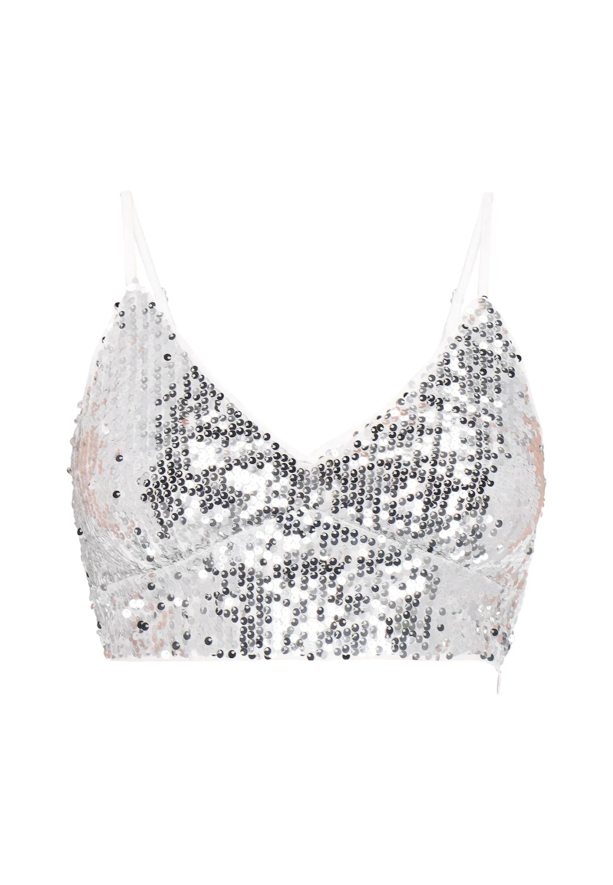 Design: Ritszakken aan de zijkant; Halstype: V-hals; Motief: Effen; Soort bandjes: Spaghettibandjes; Details: Pailletten; Extra's: Glinsterend, Verstelbare bandjes; Pasvorm: Aansluitende pasvorm; Armlengte: Mouwloos; Lengte: Korte pasvorm