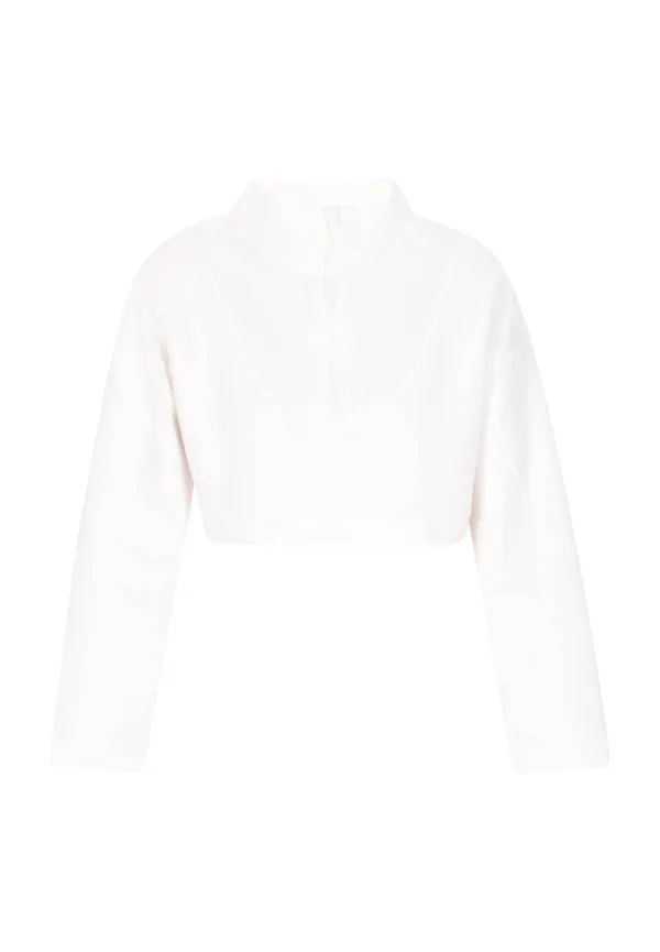 Design: Overcut schouder, Halve rits; Type sluiting: Ritssluiting; Materiaal: Sweatstof; Halstype: Schipperskraag; Motief: Effen; Extra's: Trekkoord in de boord, Op staal naden, Voelt zacht aan; Pasvorm: Losse pasvorm; Armlengte: Lange mouw; Lengte: Korte pasvorm