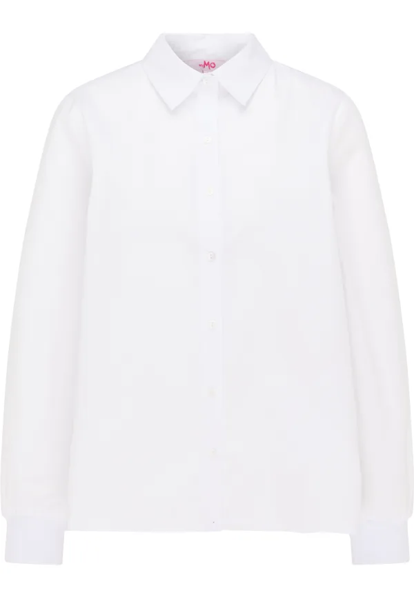 Geen voering/geen voering, geen vulling Deze blouse van myMo is een echt trendstuk! Het eenvoudige stuk van 100% katoen overtuigt met een klassieke overhemdkraag en een bijpassende knoopsluiting over de hele lengte. De blouse krijgt een moderne verfijning door de wijde snit, een boxplooi op de rug en de wijde mouwen die sportief eindigen met een geribde boord. De strakke stijl wordt zo op een sportieve manier onderstreept. Blouse