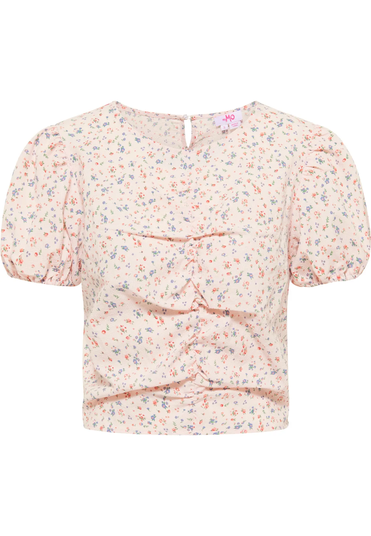De stijlvolle Spring Flowers blouse van myMo is een instant hit. De blouse is gemaakt van een zachte katoenmix, heeft een speelse ruitprint met bloemen en is ontworpen in een vrouwelijke pasvorm. Langs de ronde halslijn zitten rimpels en de korte pofmouwen zijn geoptimaliseerd met elastische boorden. De blouse sluit met een knoopje bij de hals en een blinde ritssluiting in de zijnaad. Een perfecte outfitoplossing voor spontane afspraakjes.
