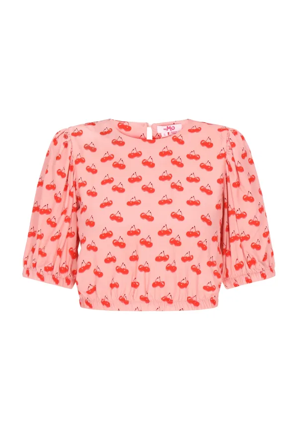 Blouse type: Wijde blouse; Design: Pofmouwen; Type sluiting: Knoopsluiting; Materiaal: Viscose; Kraag: Zonder kraag; Details: Cut-outs; Extra's: All-over patroon; Pasvorm: Normale pasvorm; Armlengte: Halve mouw; Lengte: Korte pasvorm