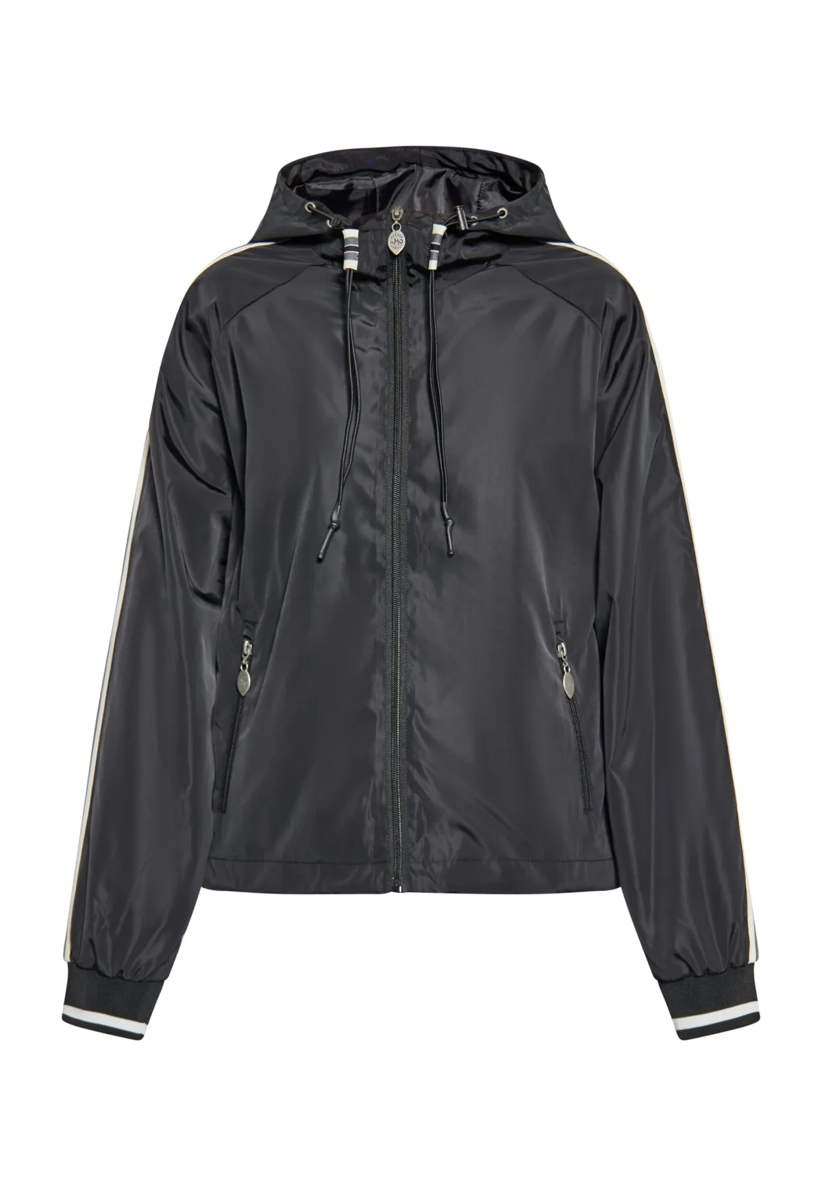 Deze blouson met lange mouwen is een veelzijdig kledingstuk met een cropped silhouet. Het beschikt over een verstelbare capuchon met trekkoorden, een centrale ritssluiting aan de voorkant en twee zakken met ritssluiting op taillehoogte. De elastische manchetten en zoom zorgen voor een comfortabele pasvorm, terwijl de reflecterende streep op de mouwen voor zichtbaarheid zorgt. Blouson