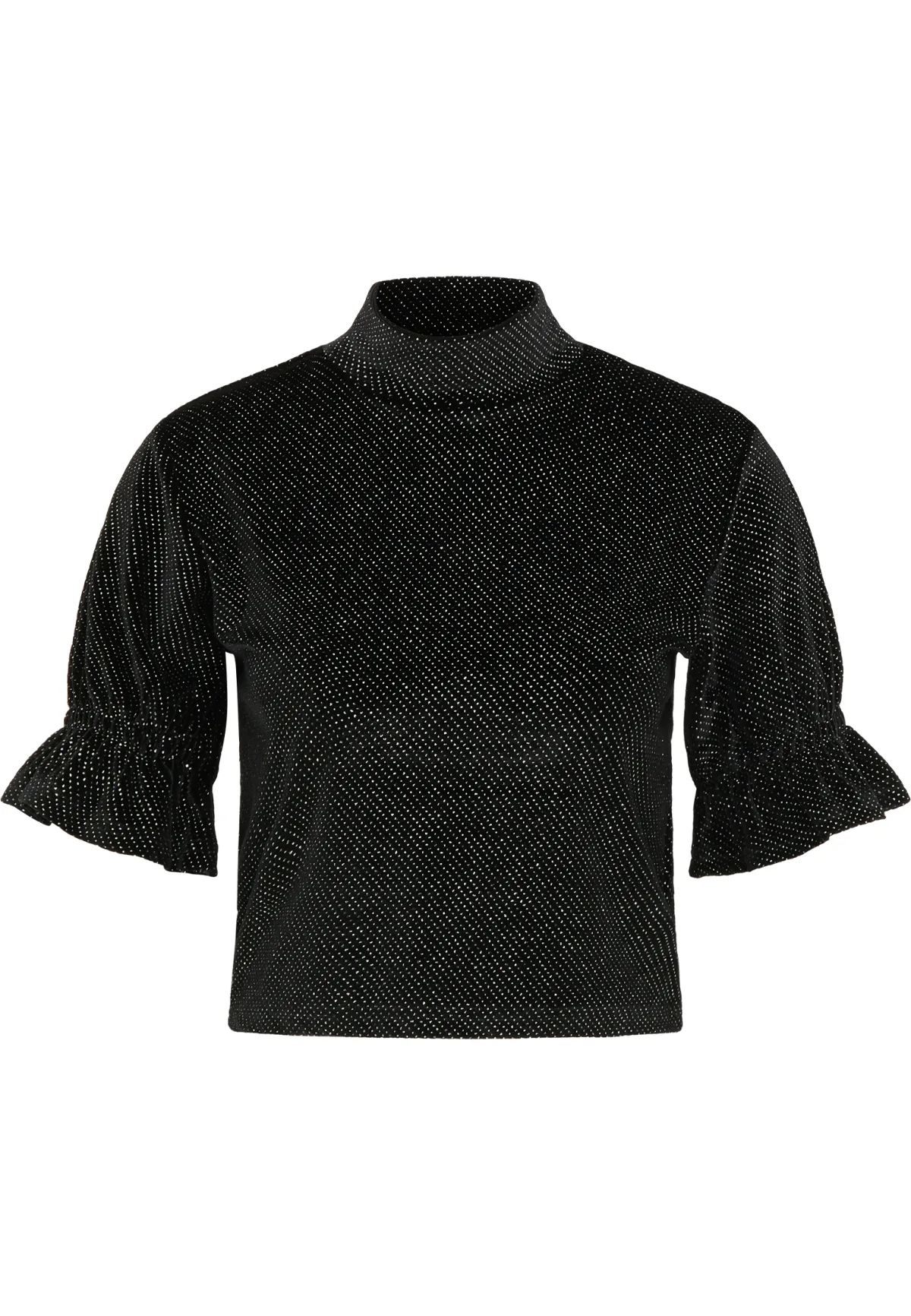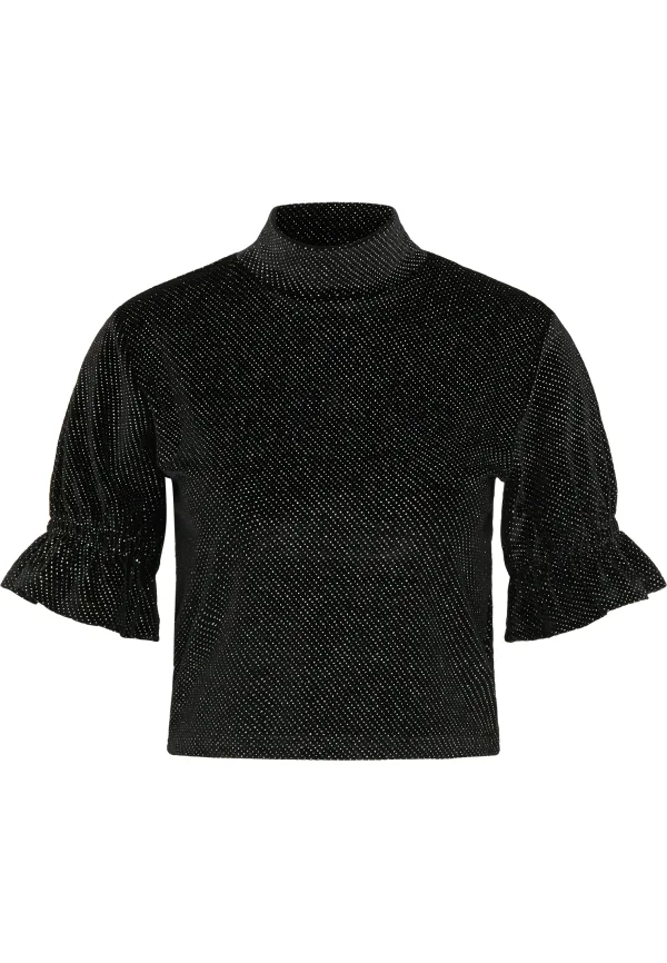 Geen voering/geen voering, geen vulling Dit cropped shirt van myMo at night is perfect voor de avond. Het zachte fluwelen materiaal met elastaan ??is rondom bedrukt met kleine, sprankelende glitterdeeltjes en zorgt zo voor een feestelijke charme. De korte mouwen zijn voorzien van een elastische band, wat het design een speelse touch geeft. Het korte, smalle silhouet wordt gecompleteerd door de opstaande kraag. T-shirt