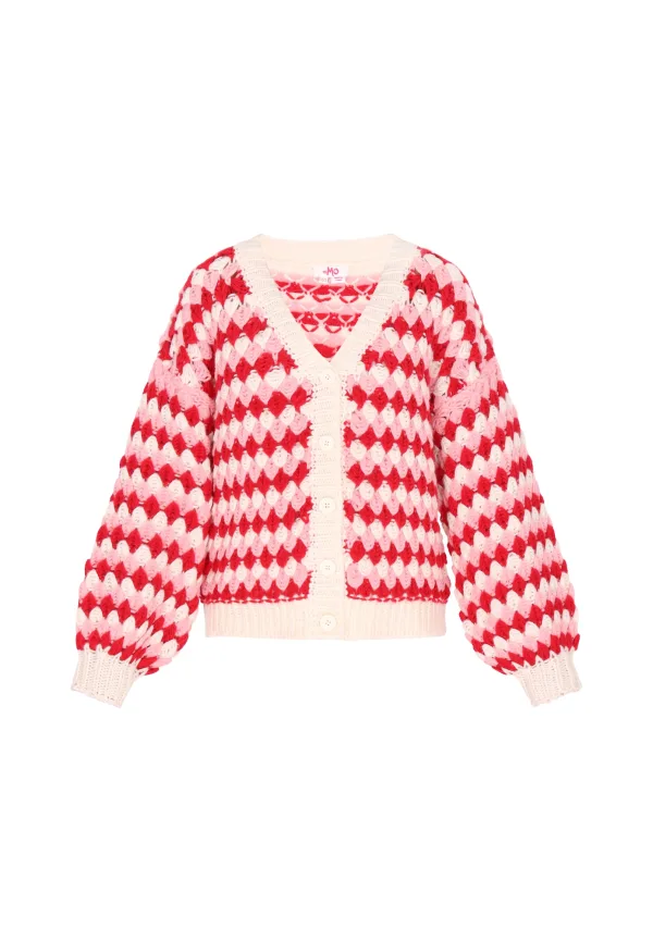 MYMO Gebreid vest beige / lichtroze / rood Prijzen