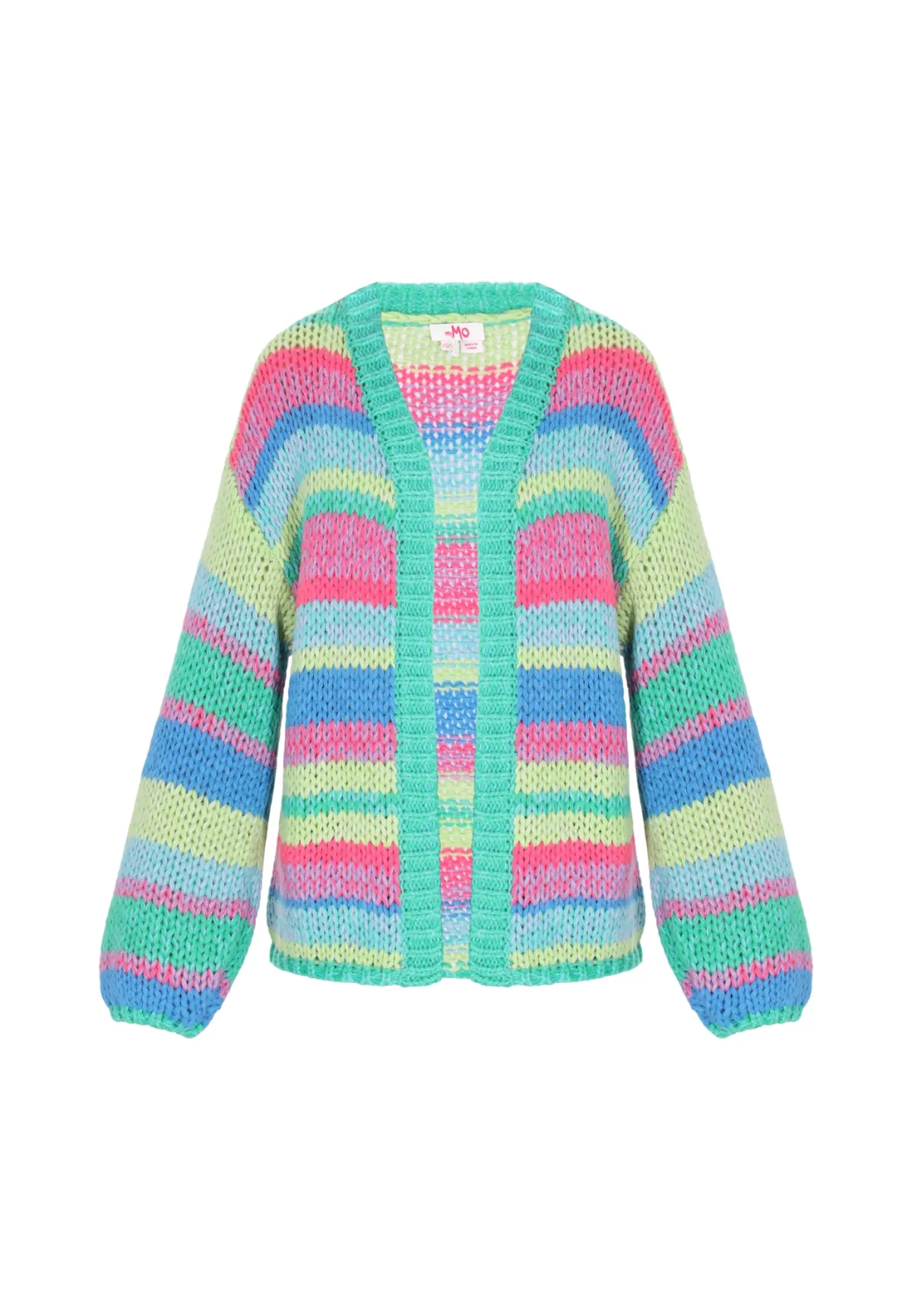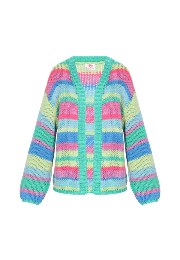 MYMO Gebreid vest blauw / lichtgeel / groen / pink