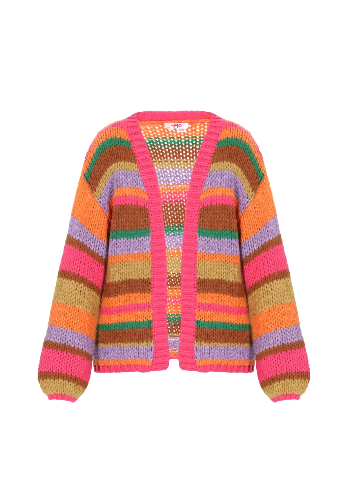 MYMO Gebreid vest bruin / groen / oranje / fuchsia