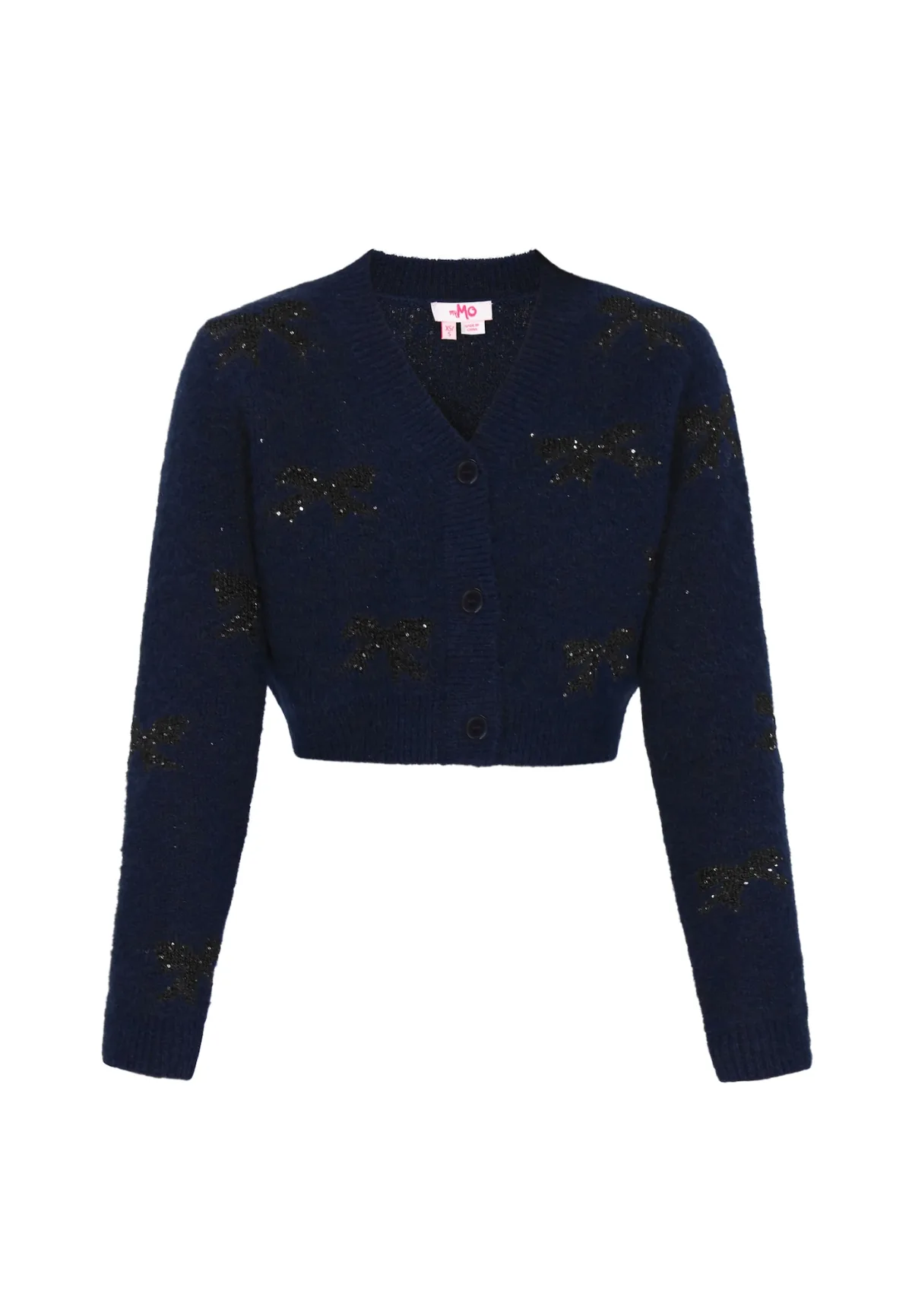 Design: Geribbelde kraag, Geribbeld gebreid; Type sluiting: Knoopsluiting; Halstype: V-hals; Extra's: Glitterend, All-over patroon; Pasvorm: Normale pasvorm; Armlengte: Lange mouw; Lengte: Korte pasvorm
