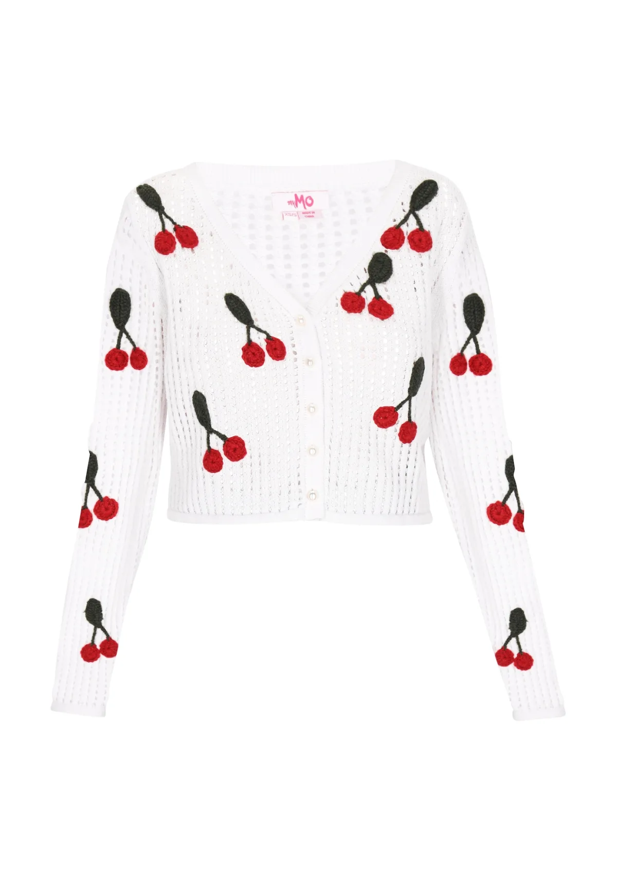 Design: Geribbelde kraag, Geribd ceintuurtje; Type sluiting: Knoopsluiting; Materiaal: Knitwear; Halstype: V-hals; Details: Borduursels, Mesh; Extra's: All-over patroon, Met textuur; Pasvorm: Losse pasvorm; Armlengte: Lange mouw; Lengte: Korte pasvorm