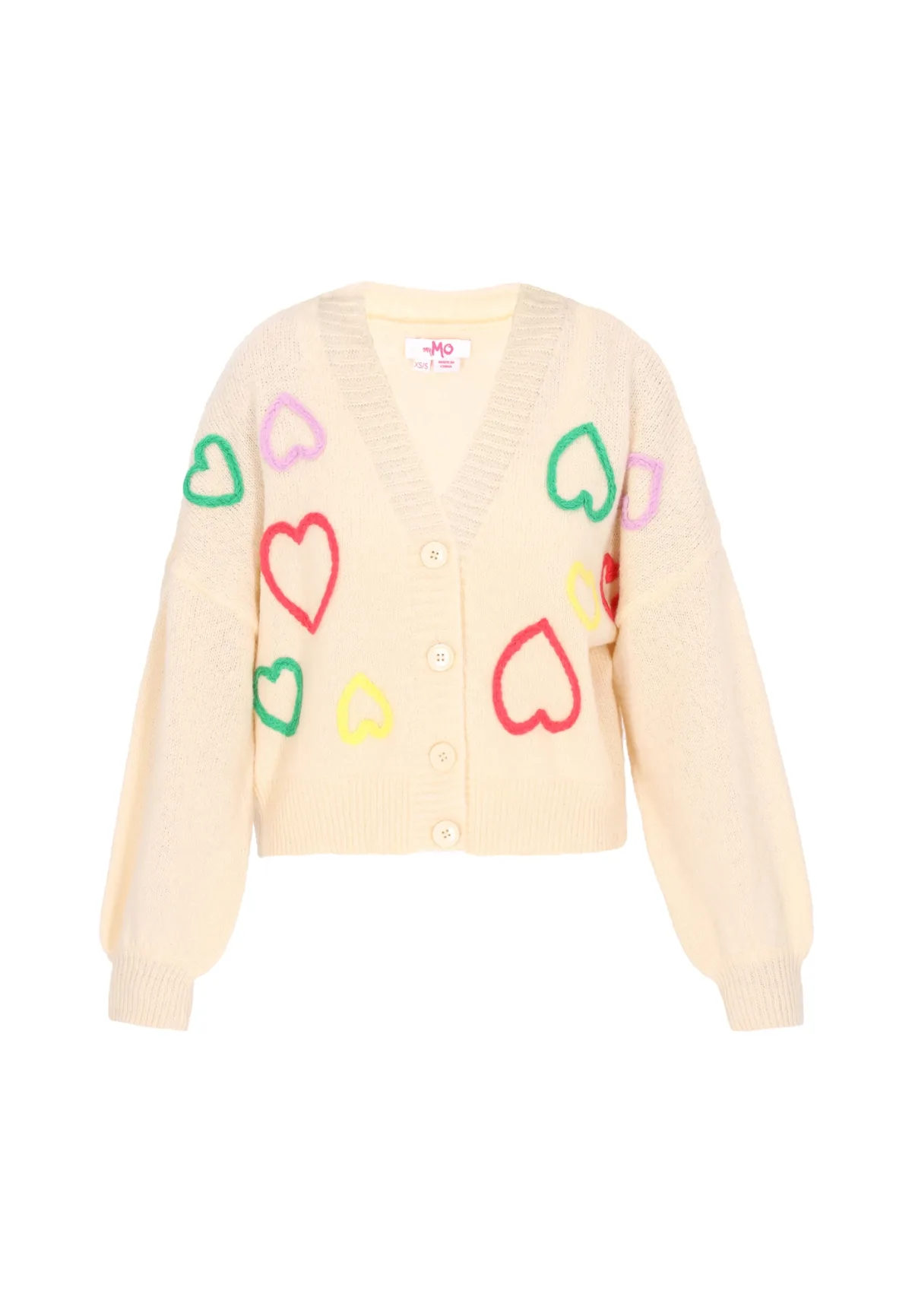 Design: Geribbelde kraag, Knop placket, Pofmouwen, Geribbeld gebreid, Overcut schouder; Type sluiting: Knoopsluiting; Materiaal: Knitwear; Halstype: V-hals; Details: Borduursels; Extra's: All-over patroon; Pasvorm: Normale pasvorm; Armlengte: Lange mouw; Lengte: Normale lengte
