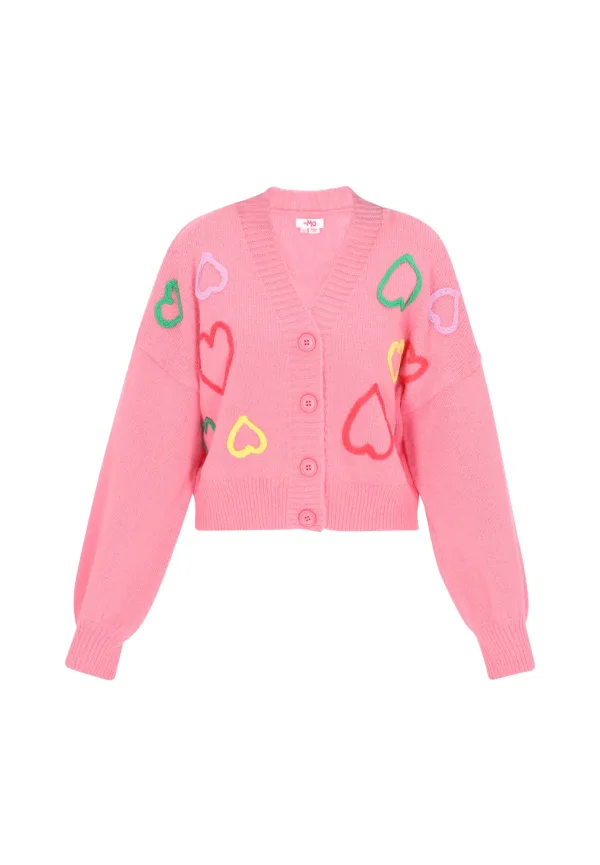 Design: Knop placket, Pofmouwen, Geribd ceintuurtje, Geribbeld gebreid, Overcut schouder; Type sluiting: Knoopsluiting; Materiaal: Knitwear; Halstype: V-hals; Details: Borduursels; Extra's: Applicaties, Op staal naden; Pasvorm: Normale pasvorm; Armlengte: Lange mouw; Lengte: Normale lengte