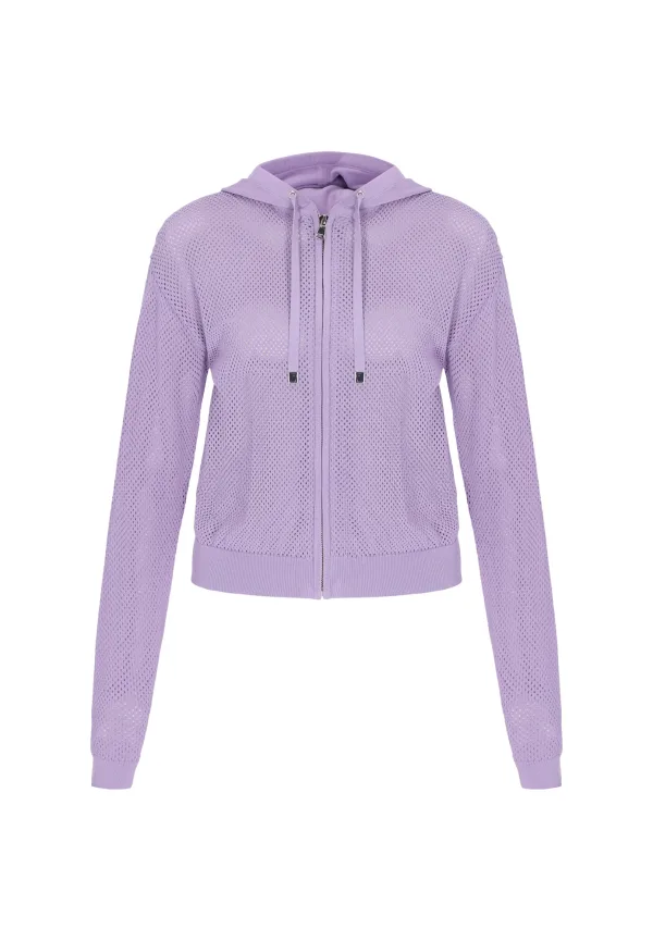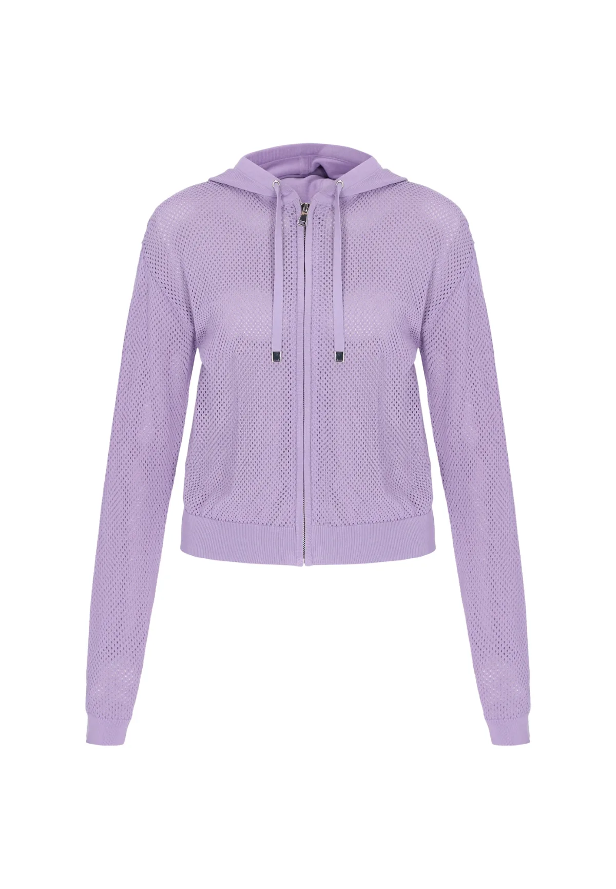 Design: Geribd ceintuurtje; Type sluiting: Ritssluiting; Materiaal: Knitwear; Halstype: Capuchon; Motief: Effen; Details: Mesh; Extra's: Fully fashioned; Pasvorm: Normale pasvorm; Armlengte: Lange mouw; Lengte: Normale lengte