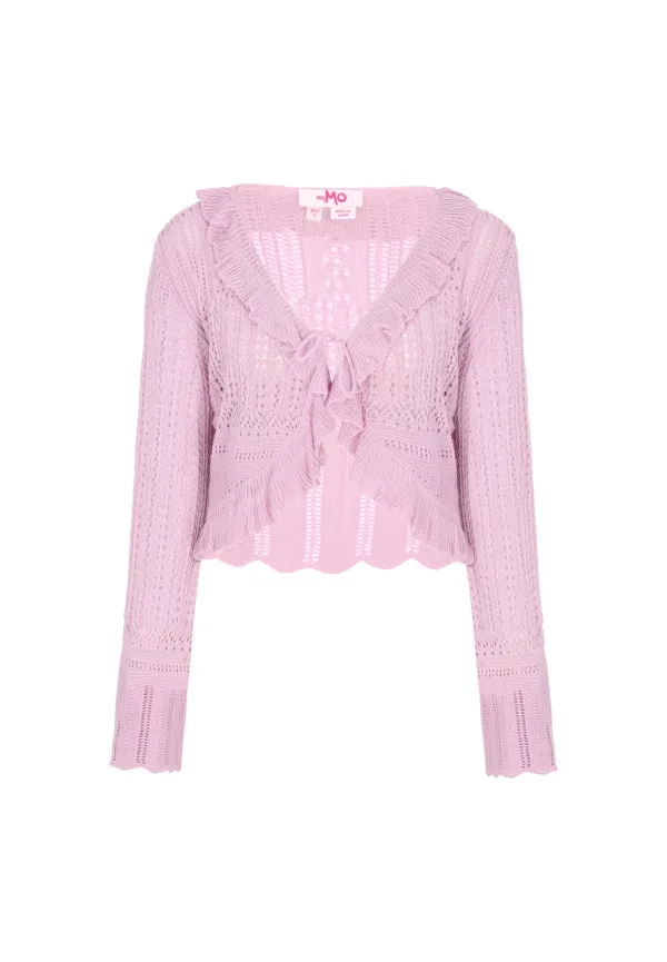 Design: Met band/snoer, Om te knopen/binden; Type sluiting: Slip; Materiaal: Knitwear; Halstype: V-hals; Motief: Effen; Details: Ruches, Mesh; Extra's: Licht transparant, Op staal naden, Met textuur; Pasvorm: Normale pasvorm; Armlengte: Lange mouw; Lengte: Korte pasvorm