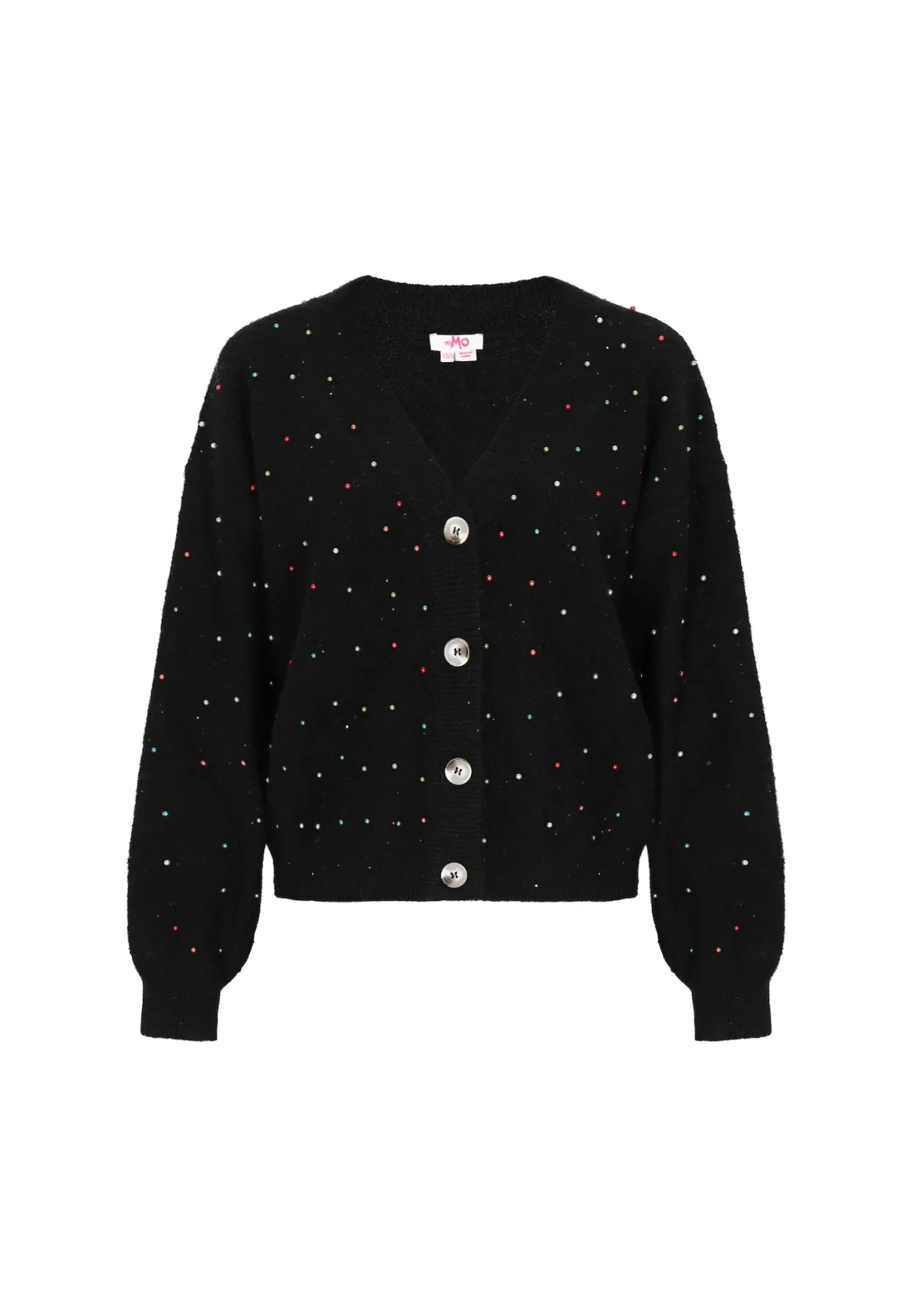 Design: Geribbelde kraag, Geribd ceintuurtje, Geribbeld gebreid, Overcut schouder; Type sluiting: Knoopsluiting; Materiaal: Knitwear; Halstype: V-hals; Details: Parels; Extra's: Glitterend; Pasvorm: Losse pasvorm; Armlengte: Lange mouw; Lengte: Normale lengte