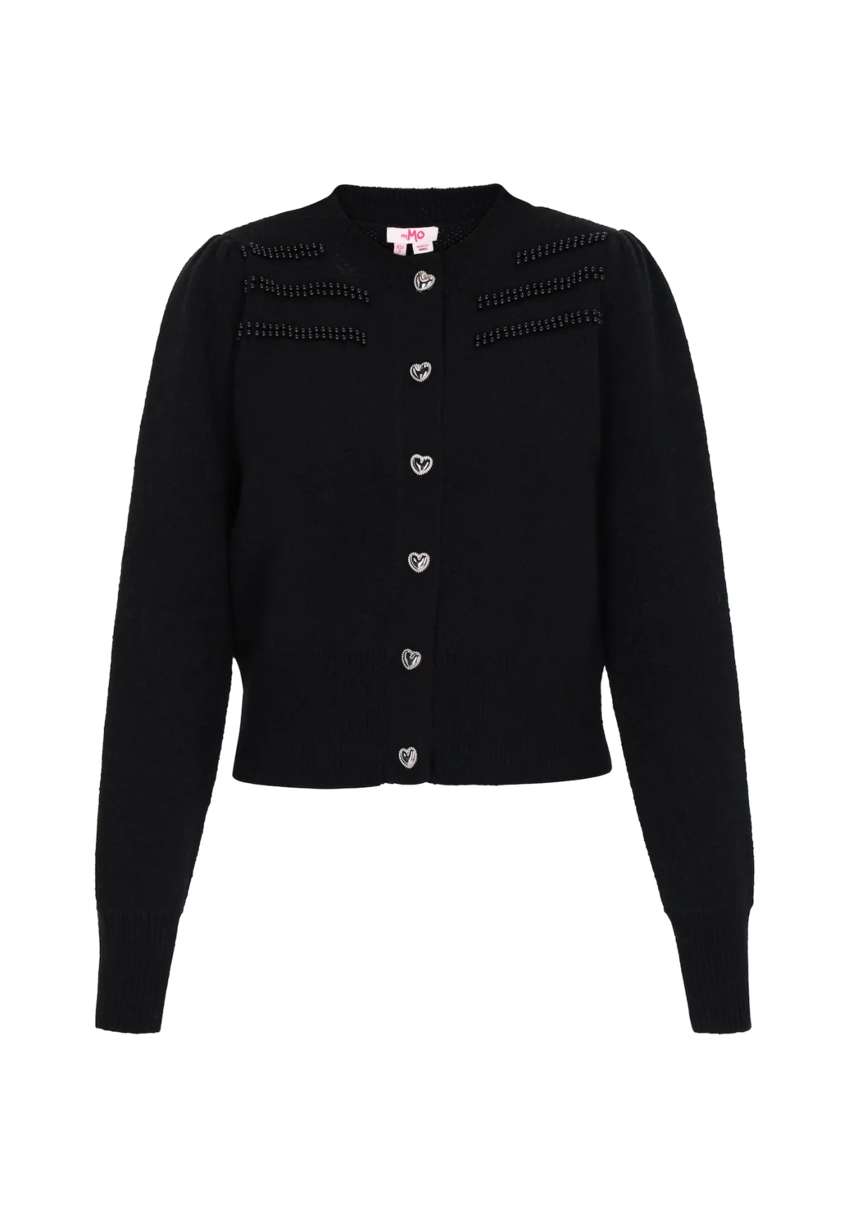 Design: Knop placket, Pofmouwen, Geribd ceintuurtje; Type sluiting: Knoopsluiting; Materiaal: Knitwear; Halstype: Ronde hals; Motief: Effen; Details: Parels; Extra's: Op staal naden; Pasvorm: Normale pasvorm; Armlengte: Lange mouw; Lengte: Normale lengte