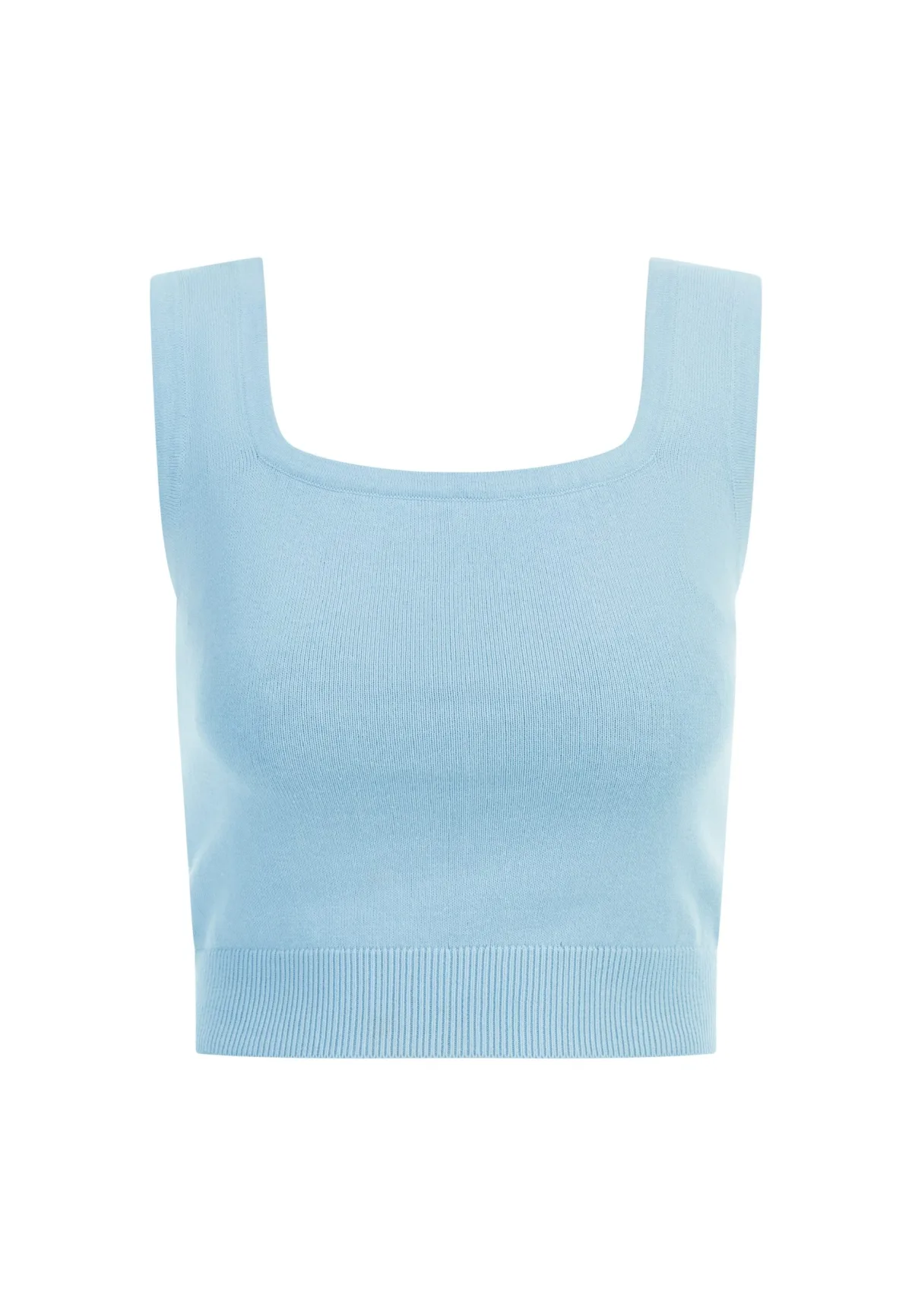 De gebreide top van myMo maakt indruk met zijn smalle cropped silhouet. De zachte maar stevige katoenmix is net zo indrukwekkend als de frisse pastelkleuren. De top wordt afgerond door de iets vierkante halslijn en de laatste geribde manchetten. Gebreide tanktop