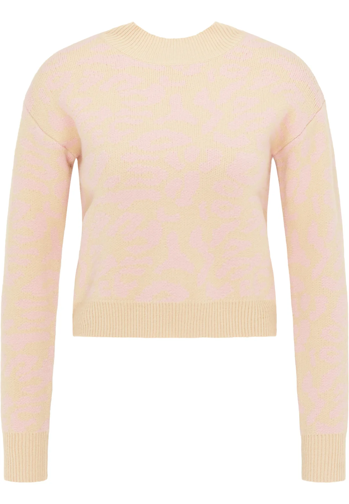Geen voering/geen voering, geen vulling Deze trui in cropped stijl van myMo is een van de toptrends van dit seizoen. De korte vorm belichaamt moderne nonchalance en de zachte viscosemix zorgt voor een comfortabel draaggevoel. Het speelse dierenpatroon maakt elke look bijzonder spannend. Een kleine opstaande kraag is ideaal voor koeler weer en de stevige geribde zoom en mouwuiteinden zorgen voor een geslaagde afwerking. Gebreide trui