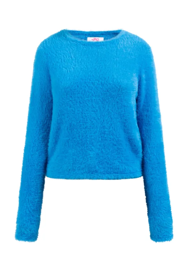 Is het zacht! Het donzige franjegaren waaruit de myMo trui is gebreid is ultrazacht en geeft de trui een bijzonder stoere look. Smalle, korte snit, klassieke ronde hals, dat is alles wat je nodig hebt om in een mum van tijd een favoriet te worden. Gebreide trui