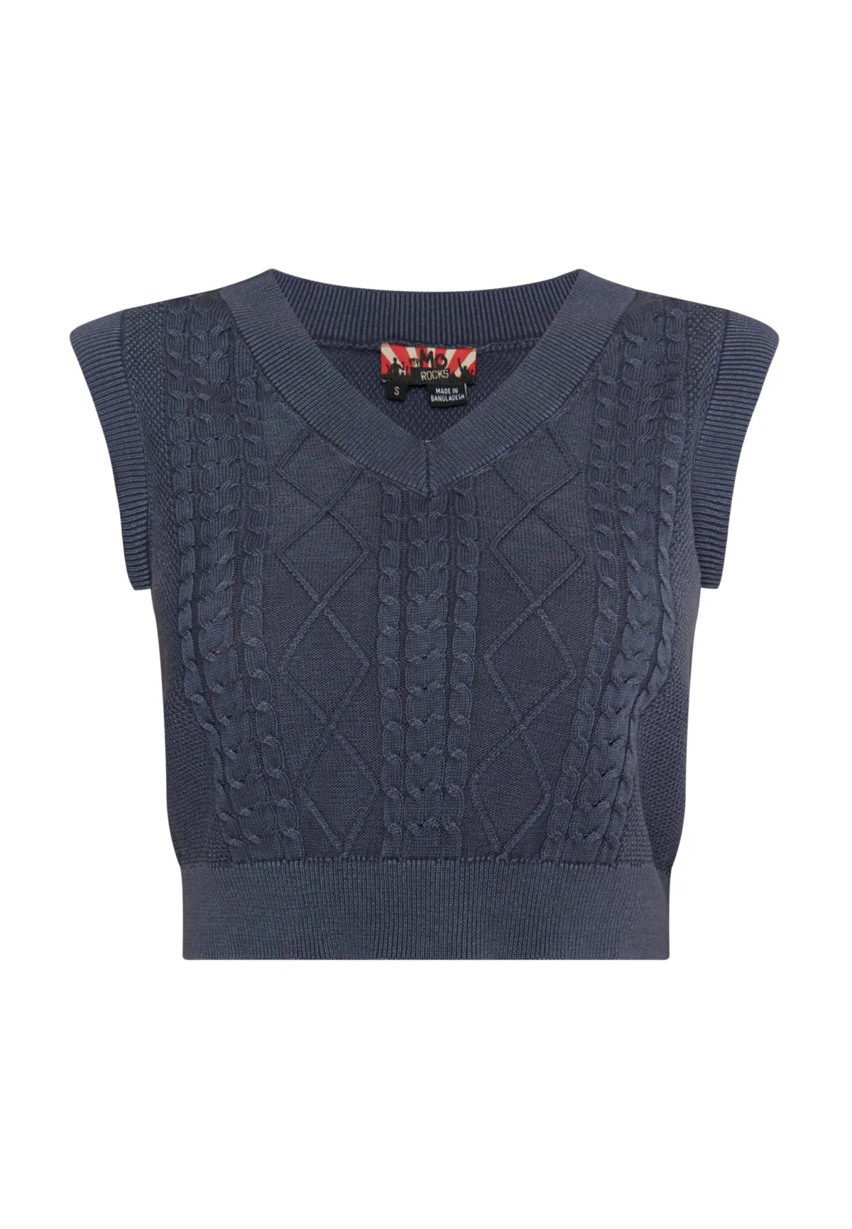 Het verkorte sweatervest van myMo ROCKS brengt een vleugje coolheid in je outfits. Het zachte kabelgebreide katoenen garen is gewassen om het een licht vintage gevoel te geven. Het smalle silhouet en de geribde manchetten onderstrepen het ontwerp. Gebreide vest