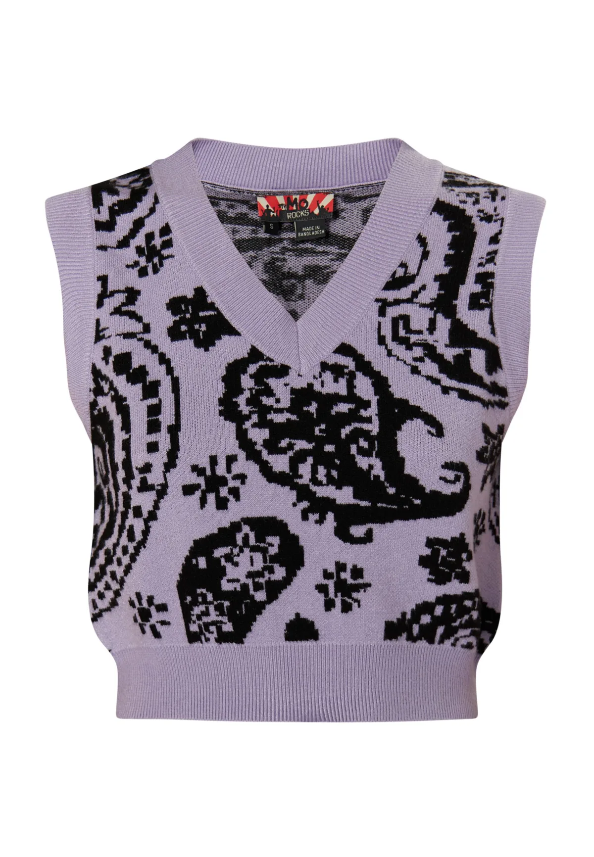 Solo of als laagje: deze gebreide trui van myMo ROCKS brengt met zijn paisley-jacquard een frisse wind in je garderobe. Het cropped model is gemaakt van een zachte viscosemix, heeft een V-hals en oogt bijzonder harmonieus door de effen randen. Gedragen op een broek met hoge taille of over een blouse, creëer je in een mum van tijd een frisse look. Gebreide vest