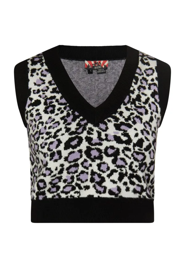 Solo of als laagje: met de stijlvolle Leo Jacquard gebreide trui van myMo ROCKS creëer je casual outfits. Het cropped model is gemaakt van een zachte viscosemix, heeft een V-hals en oogt bijzonder harmonieus door de effen randen. Gedragen op een broek met hoge taille of over een blouse, creëer je in een handomdraai een coole statement-look. Gebreide vest