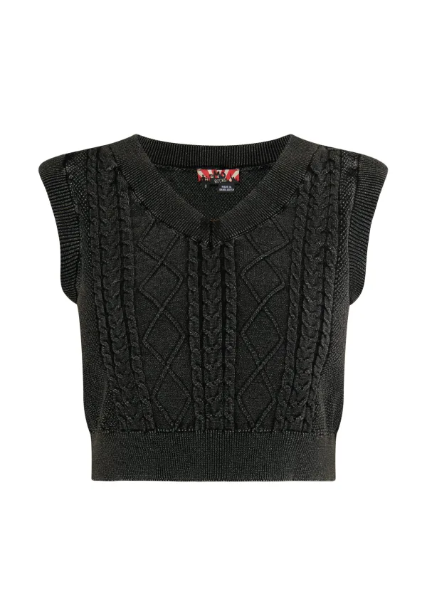 Het verkorte sweatervest van myMo ROCKS brengt een vleugje coolheid in je outfits. Het zachte kabelgebreide katoenen garen is gewassen om het een licht vintage gevoel te geven. Het smalle silhouet en de geribde manchetten onderstrepen het ontwerp. Gebreide vest