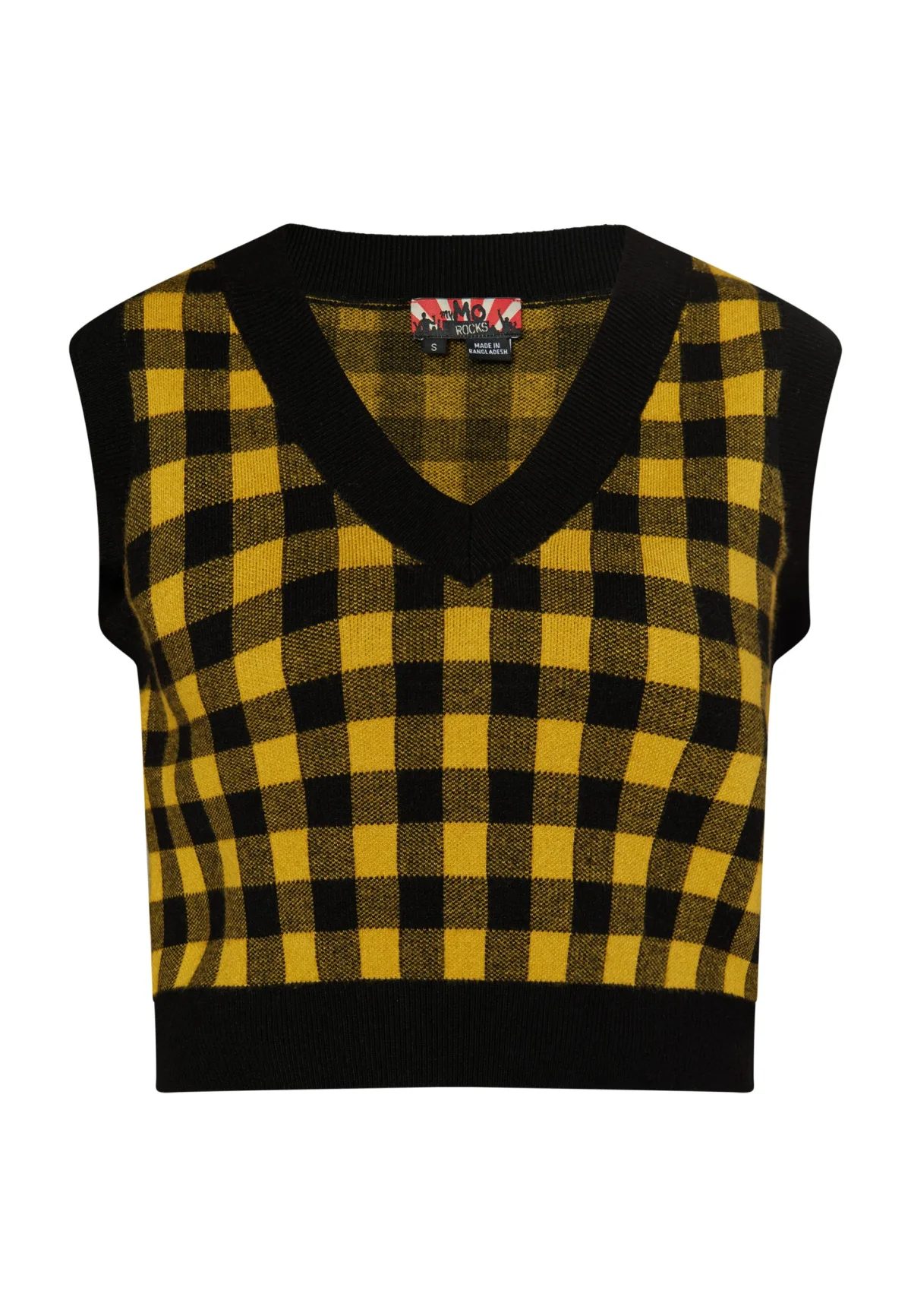 De cropped sweatervesten van myMo ROCKS overtuigen door hun ontspannen nonchalance en trendy dambordpatronen. De zachte viscosemix brengt je direct in de comfortzone, terwijl het cropped silhouet uitnodigt tot laagjeslooks. Geweldig bij een broek met hoge taille, jeans en bikerlaarzen. Gebreide vest