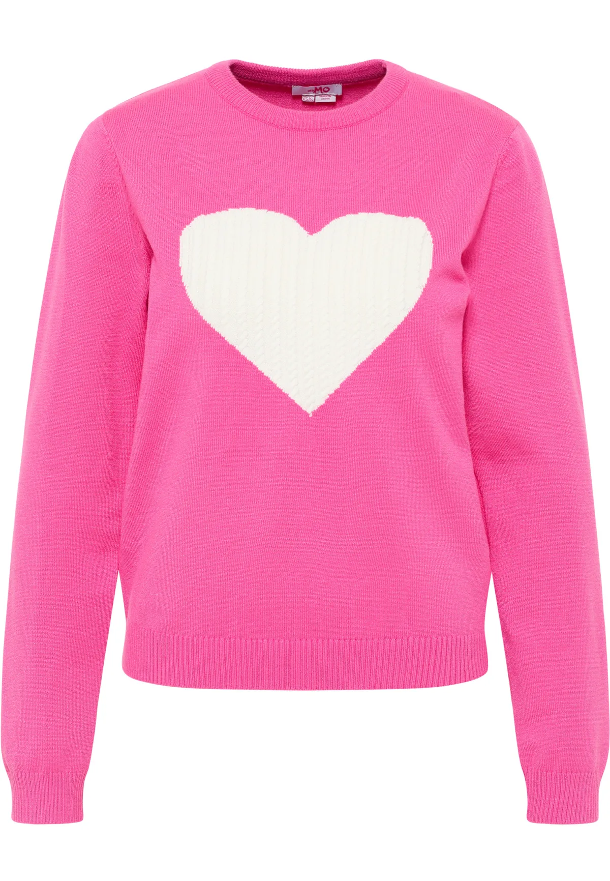 MyMo weet hoe je harten sneller laat kloppen met deze trui in intarsia breisel. Het zachte garen met viscosegehalte voelt zeer aangenaam aan en is voorzien van een gestructureerd hart met kabelpatroon. Het klassieke silhouet met ronde hals en gebreide manchetten zorgt voor de laatste accenten.