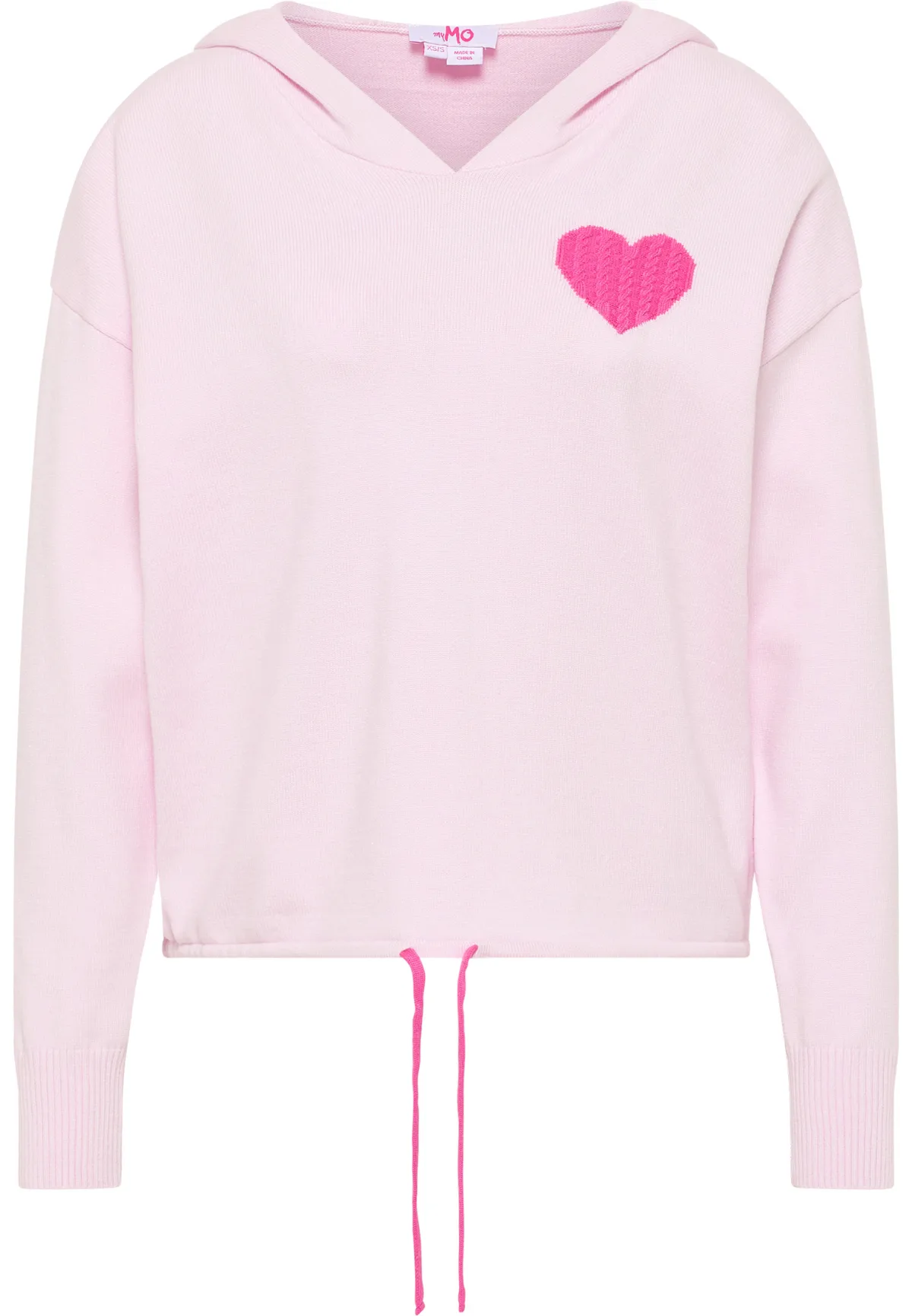 Geen voering/geen voering, geen vulling De zacht gebreide trui in hoodie-stijl is gemaakt door myMo van een zachte garenmix met viscose-gehalte. Het heeft een charmant gevormde V-hals die uitmondt in een capuchon. Een echte eyecatcher is een intarsia hart met kabelpatroon op de borst. Een trekkoord in de zoom zorgt voor een getailleerde pasvorm. Gebreide trui