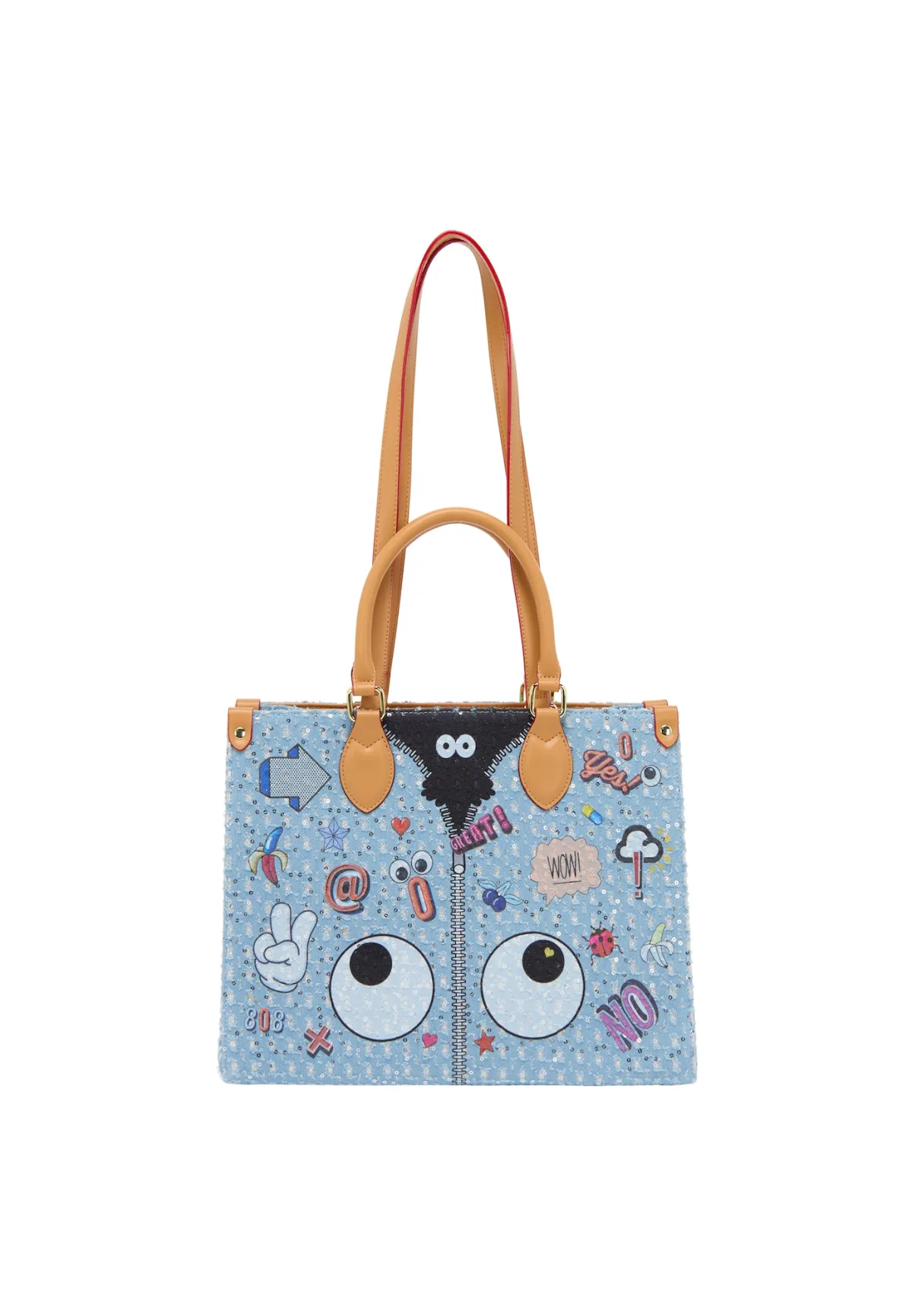 MYMO Handtas ‘Pop Eyetheme’ blauw denim / lichtblauw / zwart / wit