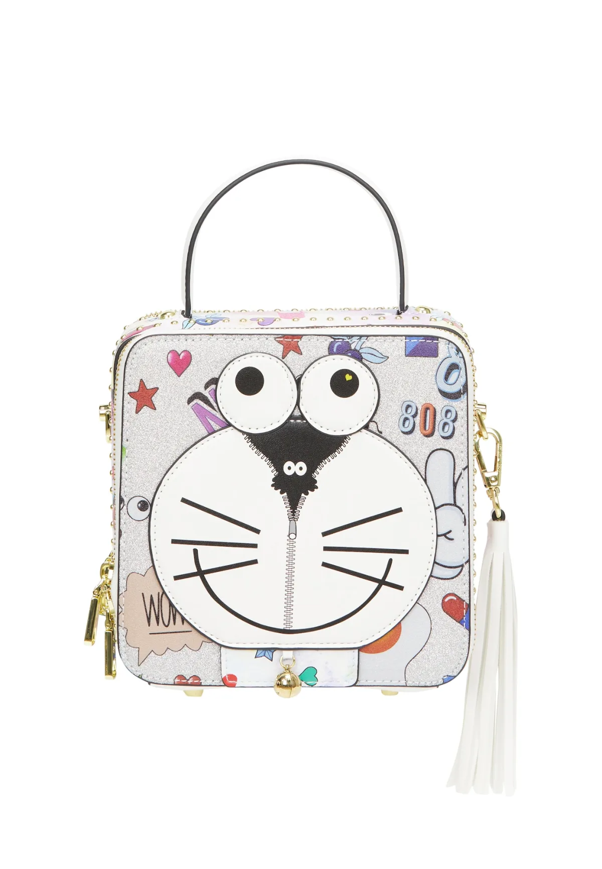 MYMO Handtas ‘Pop Eyetheme’ blauw / zwart / zilver / wit